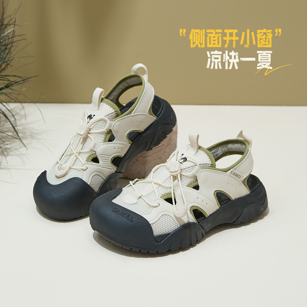 骆驼休闲凉鞋女鞋2026夏季新款包头凉鞋厚底沙滩鞋镂空休闲溯溪鞋