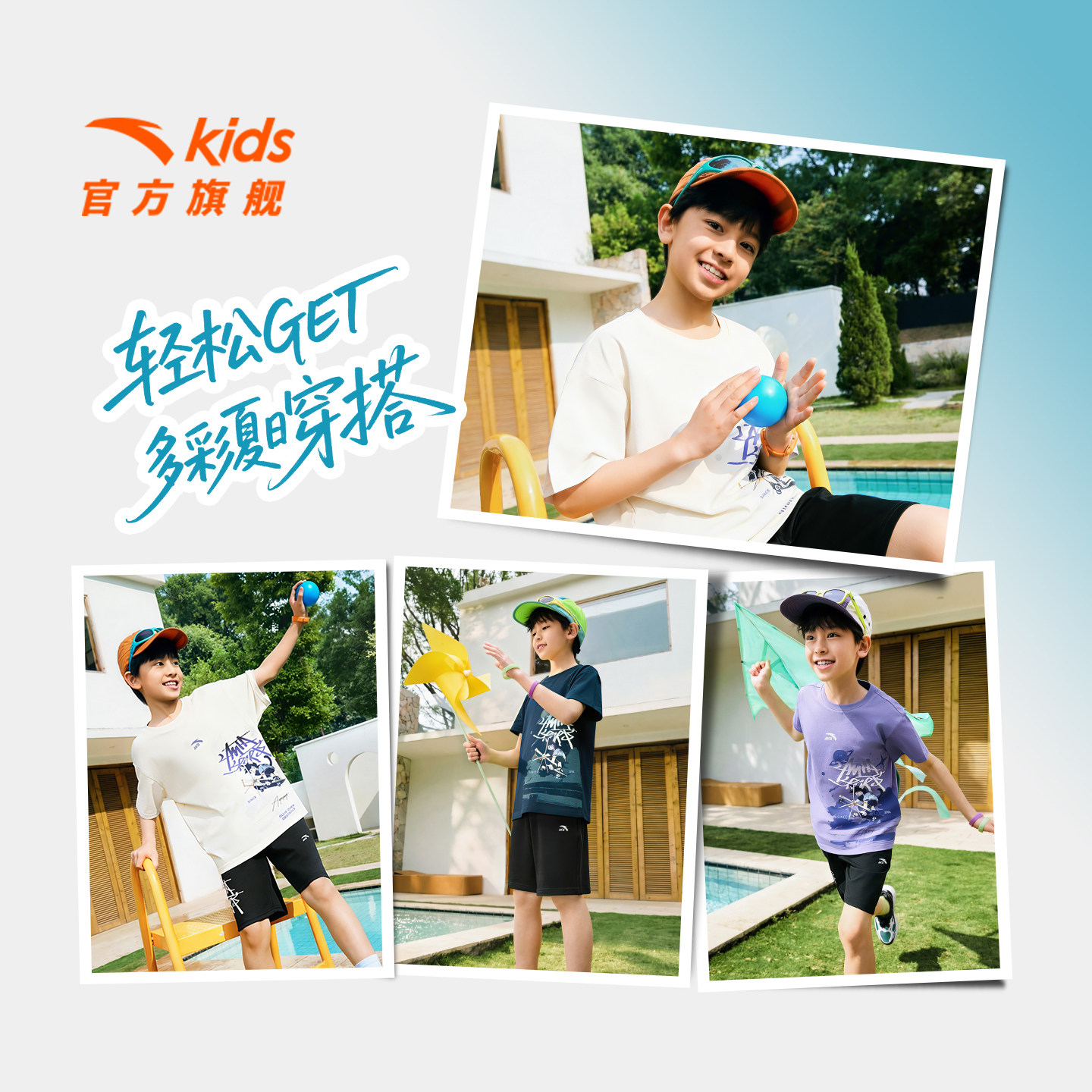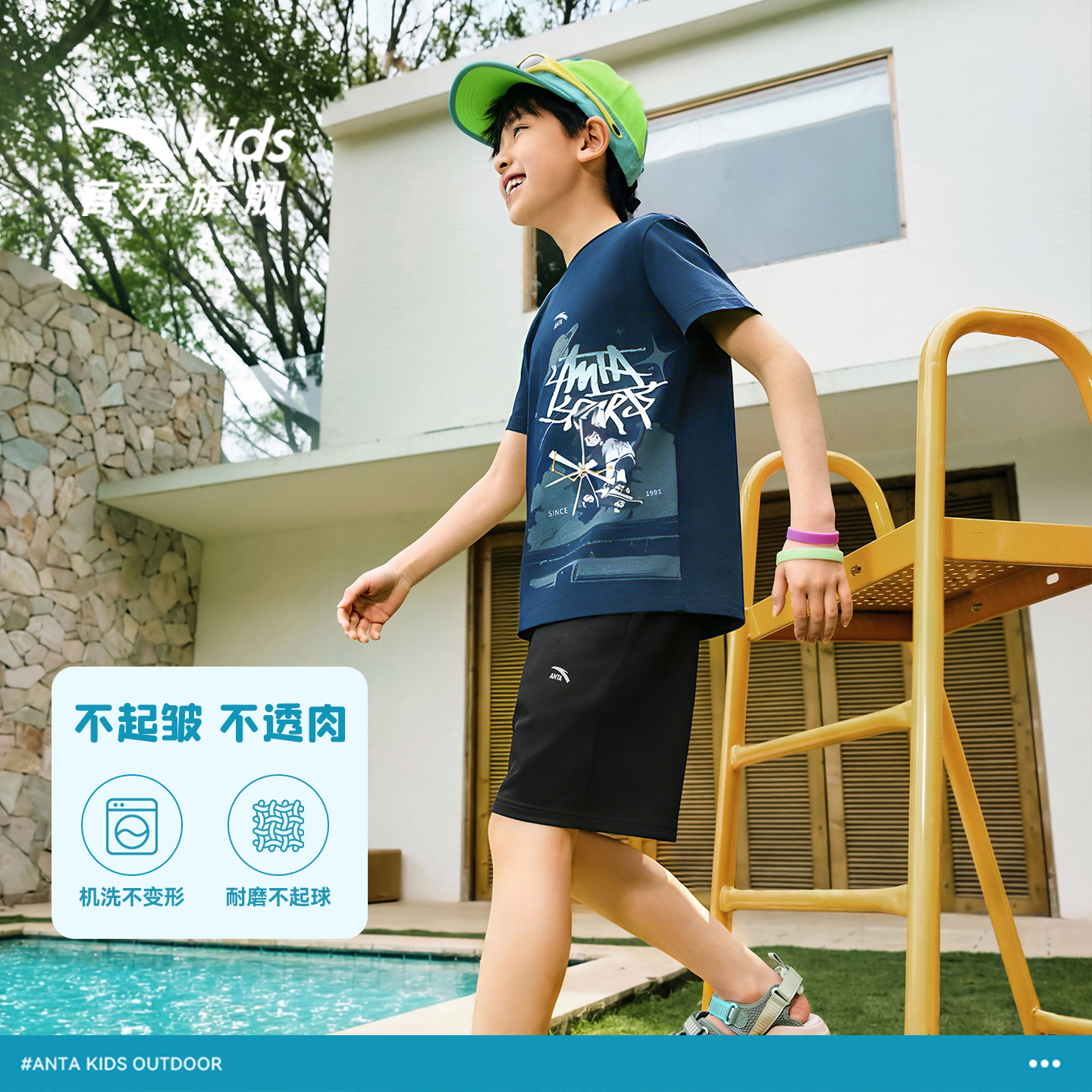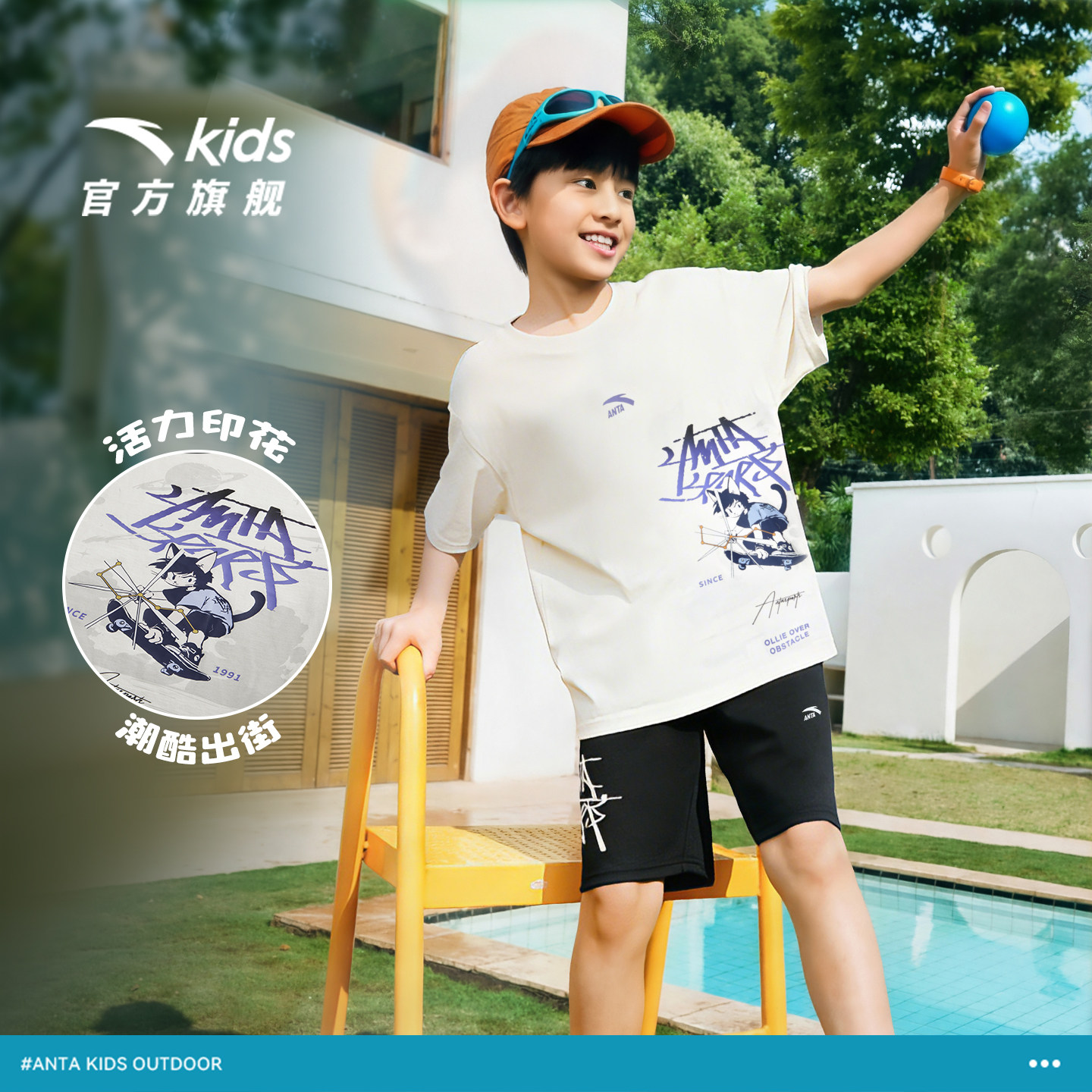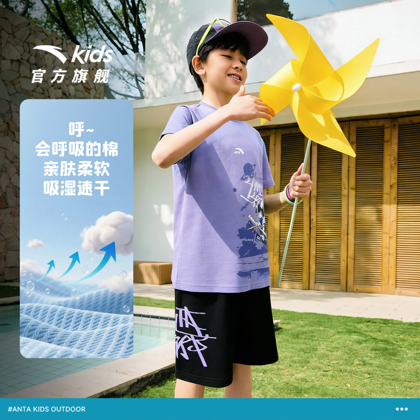 安踏儿童男女童海绵T套装2026年夏季新款亲肤透气短袖短裤运动套