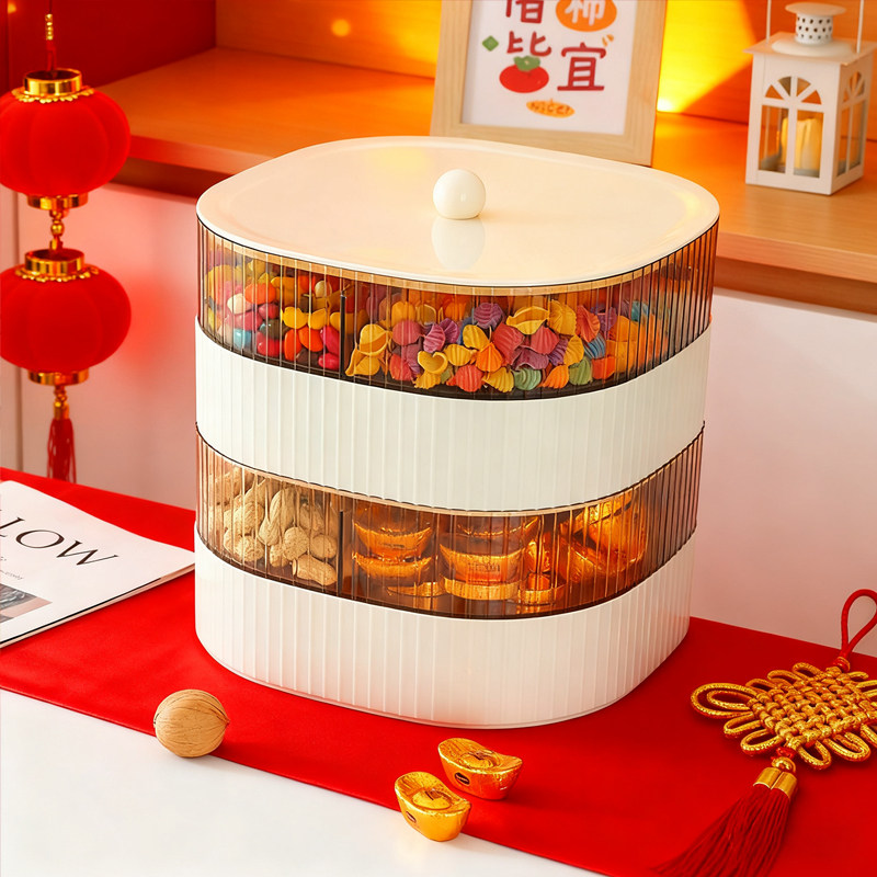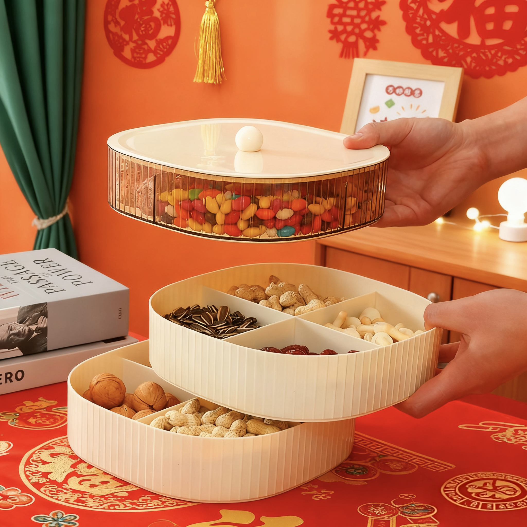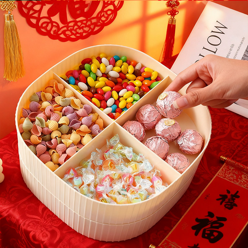 新年果盘家用客厅茶几坚果零食瓜子果盘带盖分格干果收纳盒糖果盘