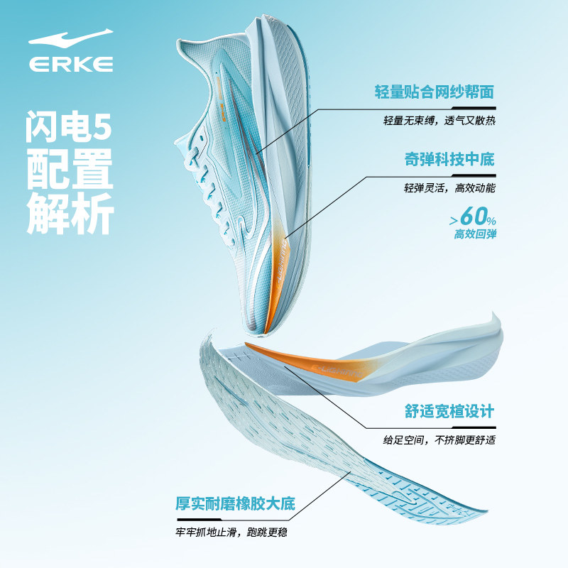 闪电5鸿星尔克跑步鞋夏季新款减震运动鞋青少年体测跑鞋透气男鞋