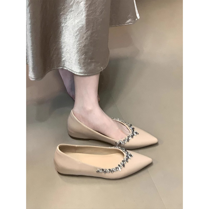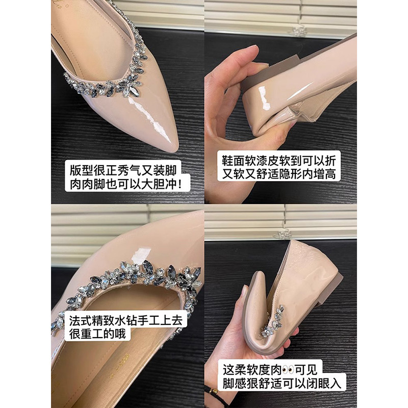 内增高法式裸色尖头单鞋女2025新款名媛千金平底浅口气质玛丽珍鞋