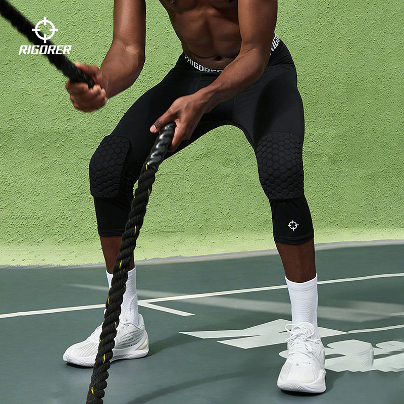 准者护膝紧身裤男子专业运动篮球蜂窝防撞七分裤膝盖跑步健身裤子