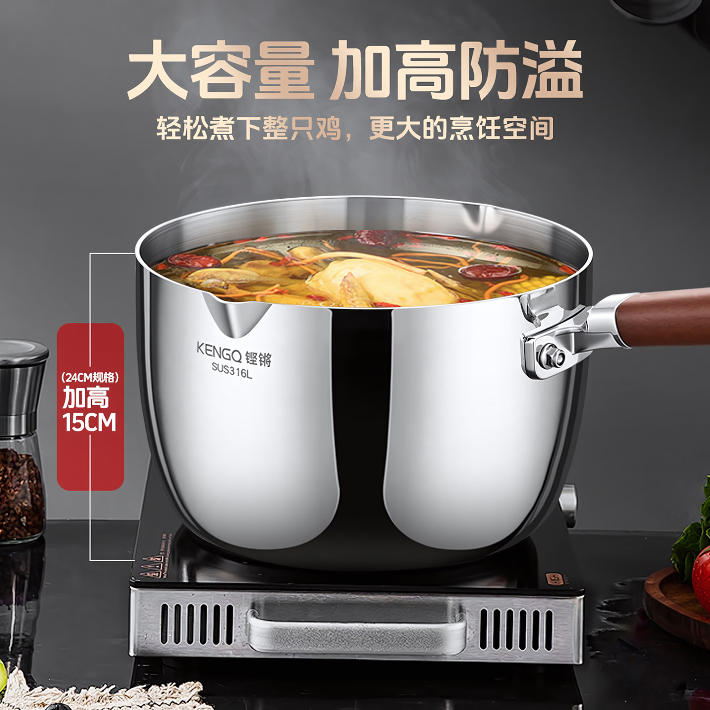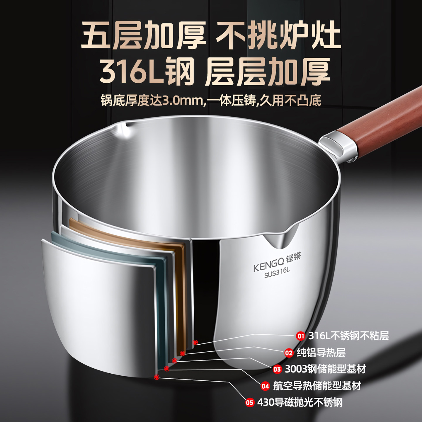 铿锵加高316L不锈钢小奶锅家用食品级宝宝辅食锅泡面锅电磁炉汤锅