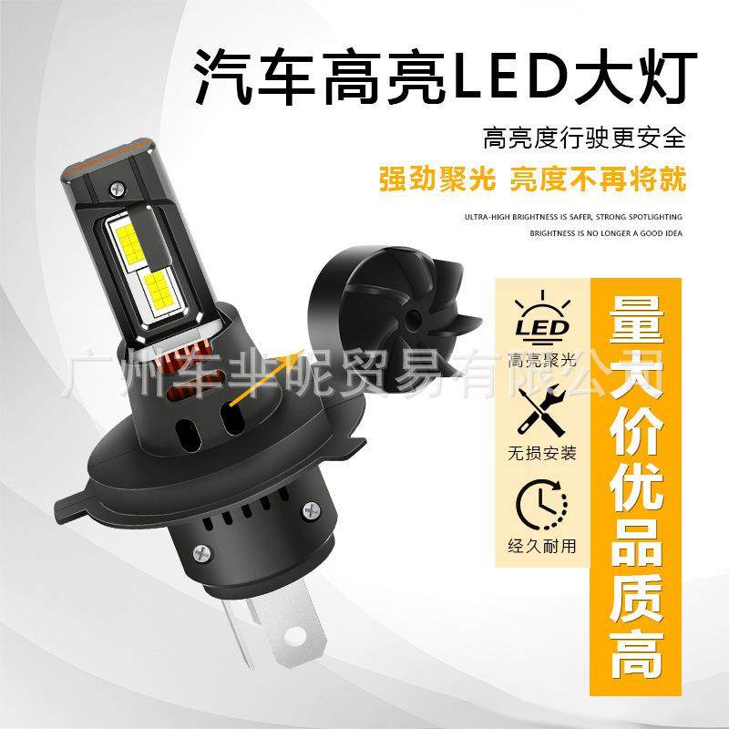 跨境led车灯替换H4雾灯超亮远近光前大灯铜片风扇即插汽车灯泡