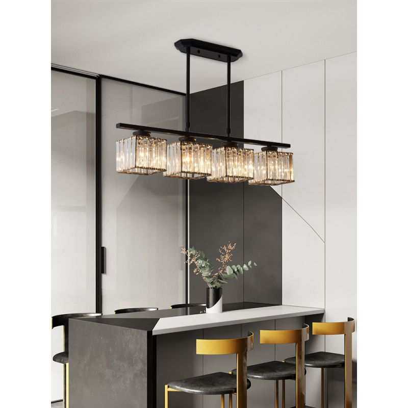 餐厅吊灯后现代简约吧台饭歺桌创意个性三头长条轻奢黑色水晶灯具