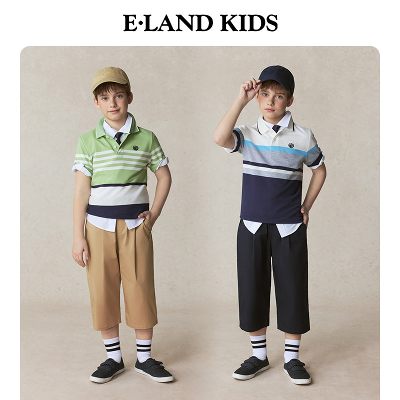 eland kids衣恋童装男童七分裤2025年夏新品徽章刺绣松紧腰休闲裤
