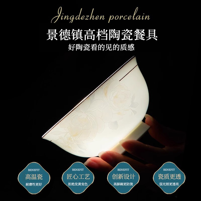 2025新款碗碟套装家用高颜值乔迁新居中式景德镇陶瓷餐具碗盘组合