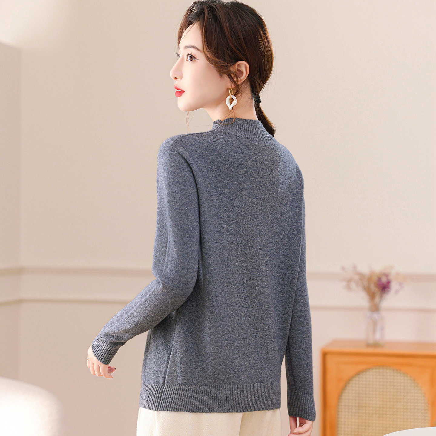 K1【爆款秒杀】半高圆领针织衫套头大码宽松百搭打底针织