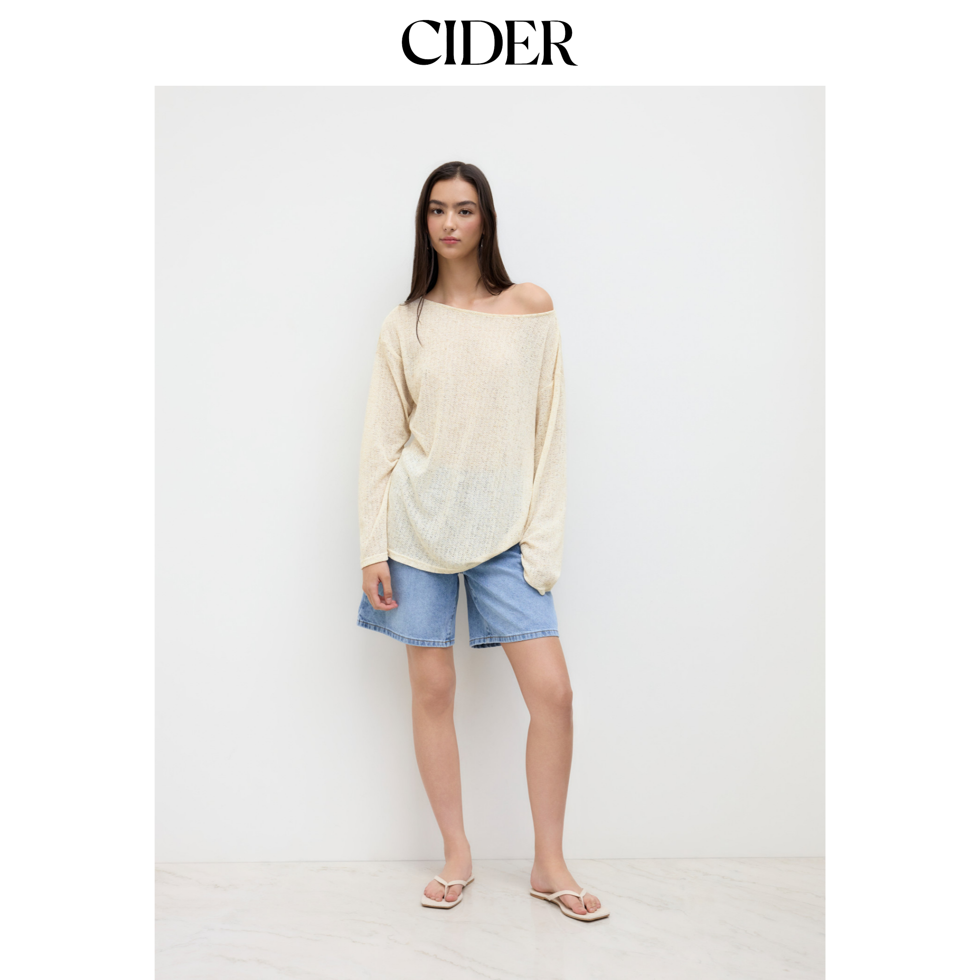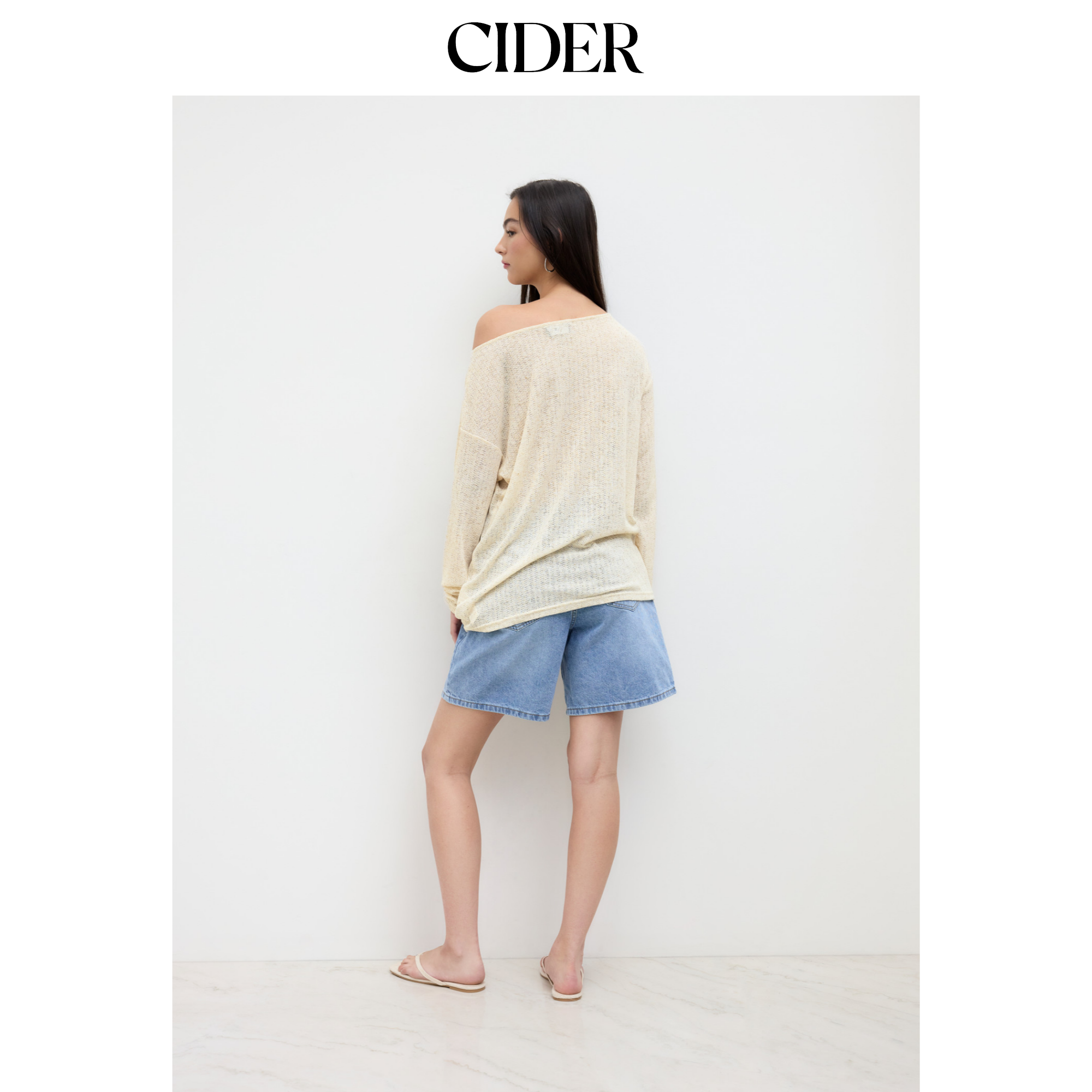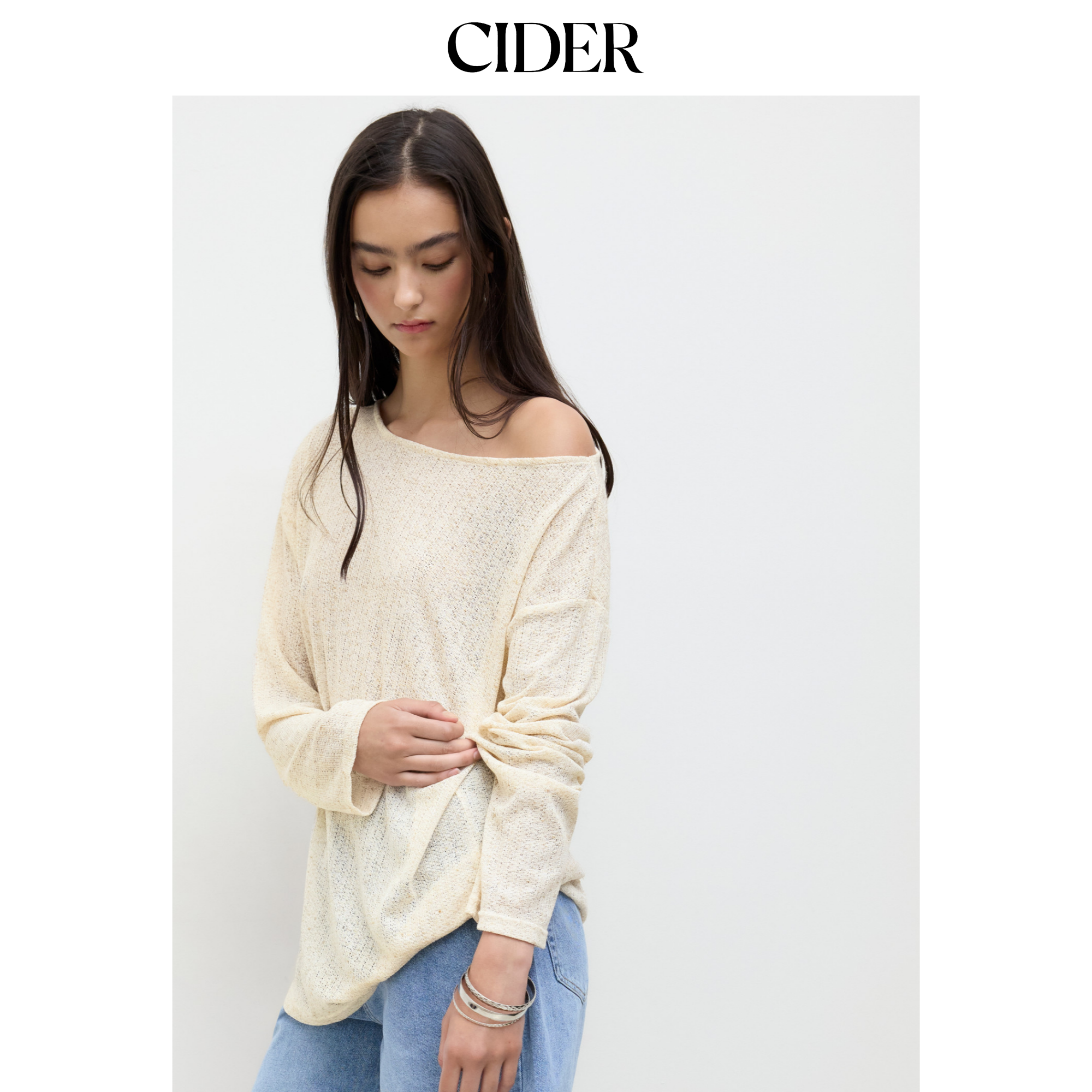 CIDER 亚麻设计感不规则船领宽松针织衫上衣114615946