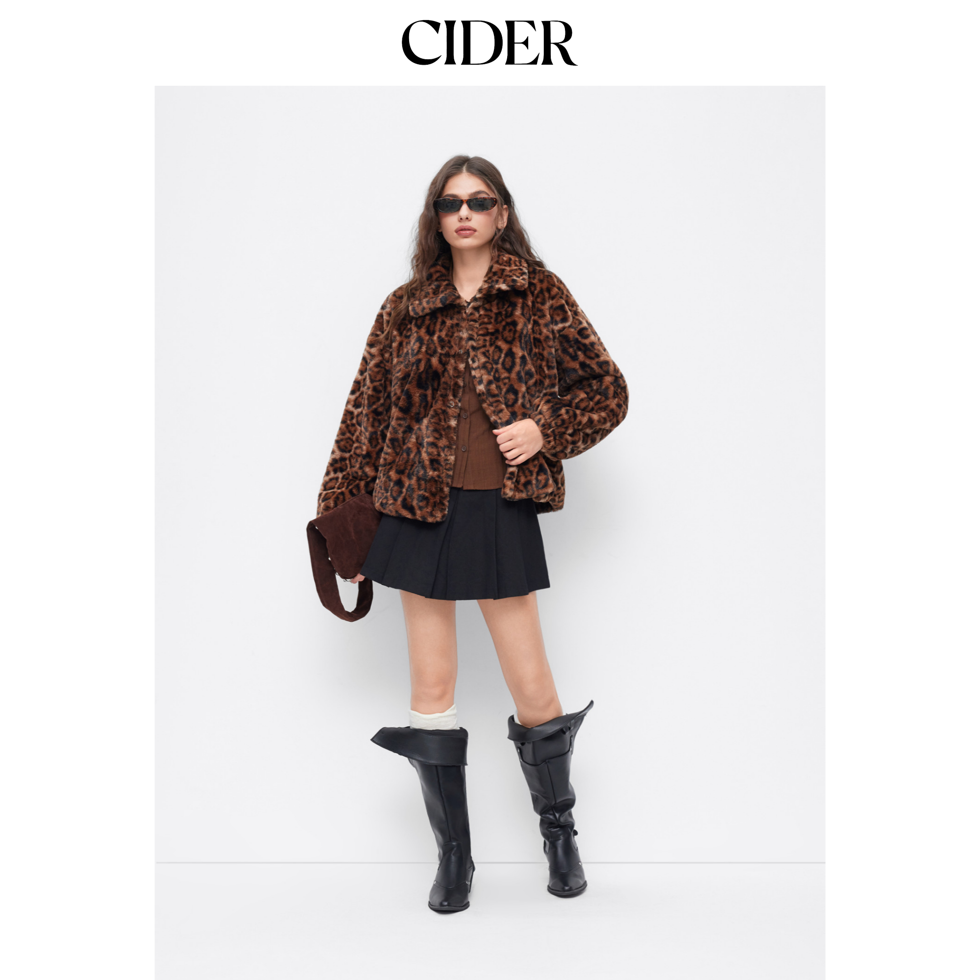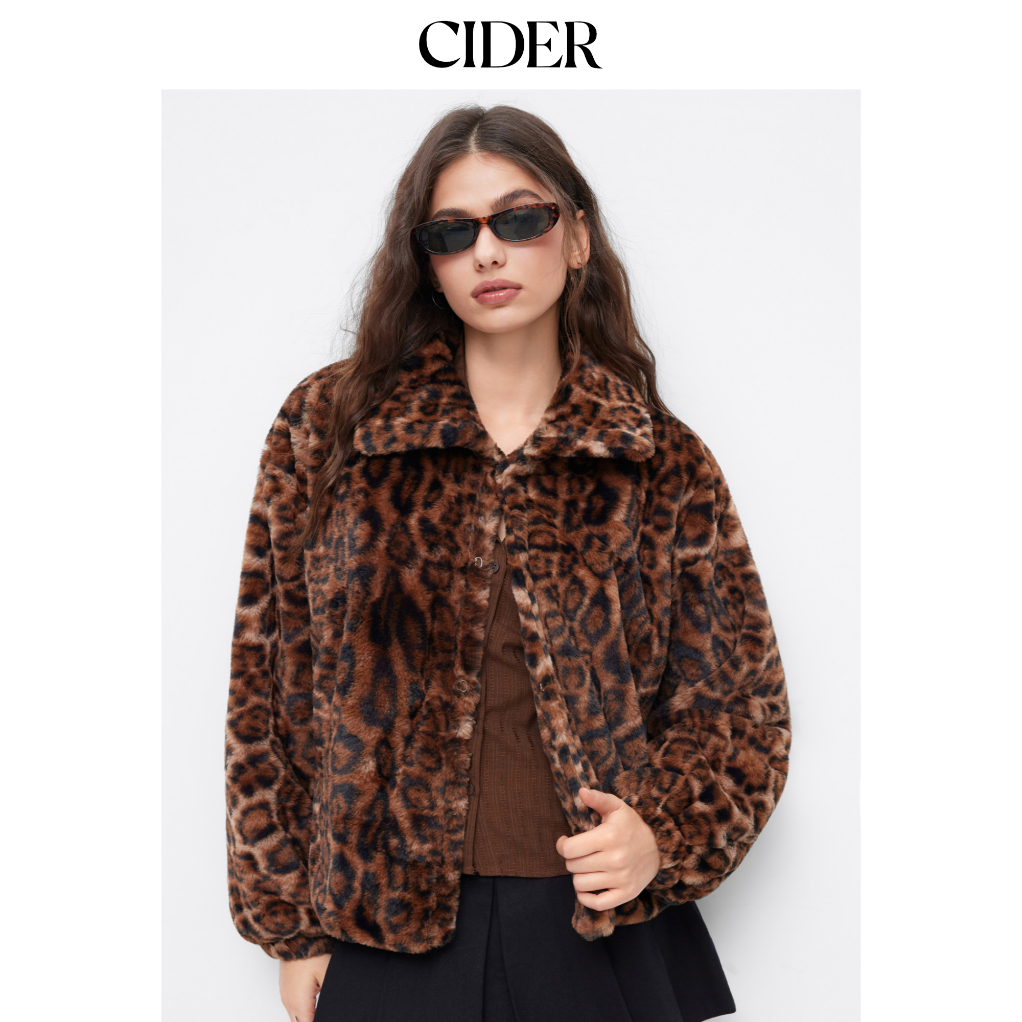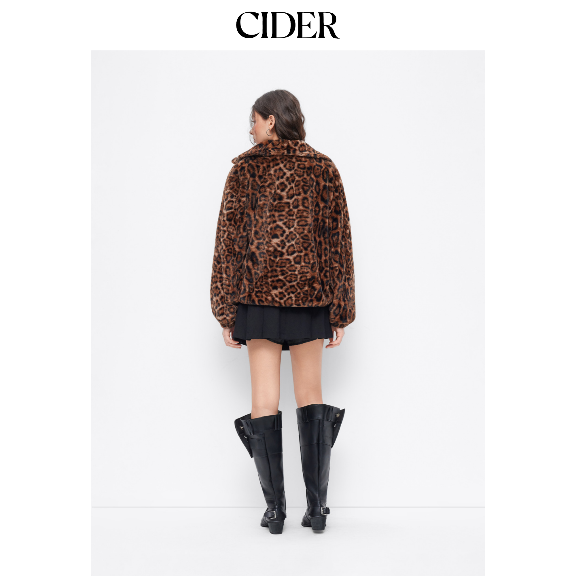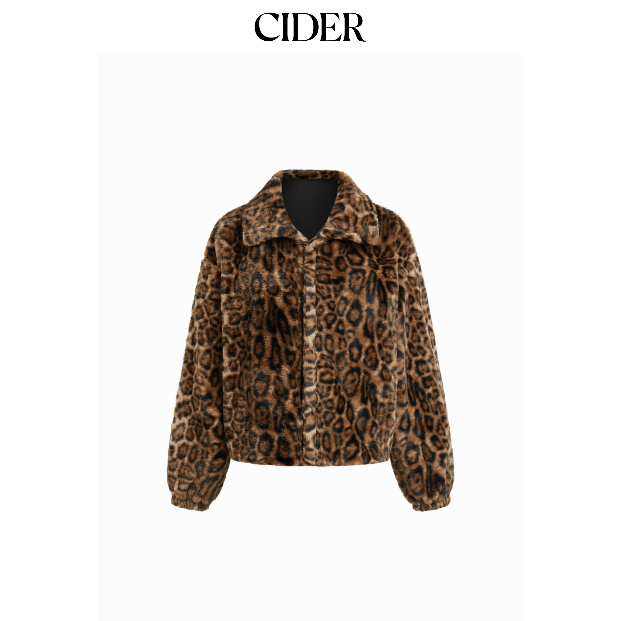 CIDER仿皮草翻领豹纹宽松外套115012110