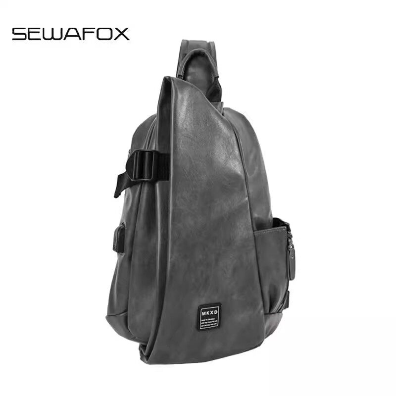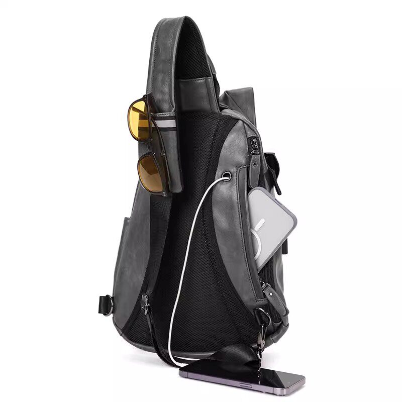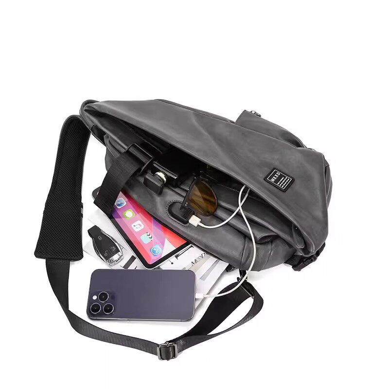 皮质胸包男款潮牌男士斜挎包机车斜肩包单肩包男包通勤设计感小众