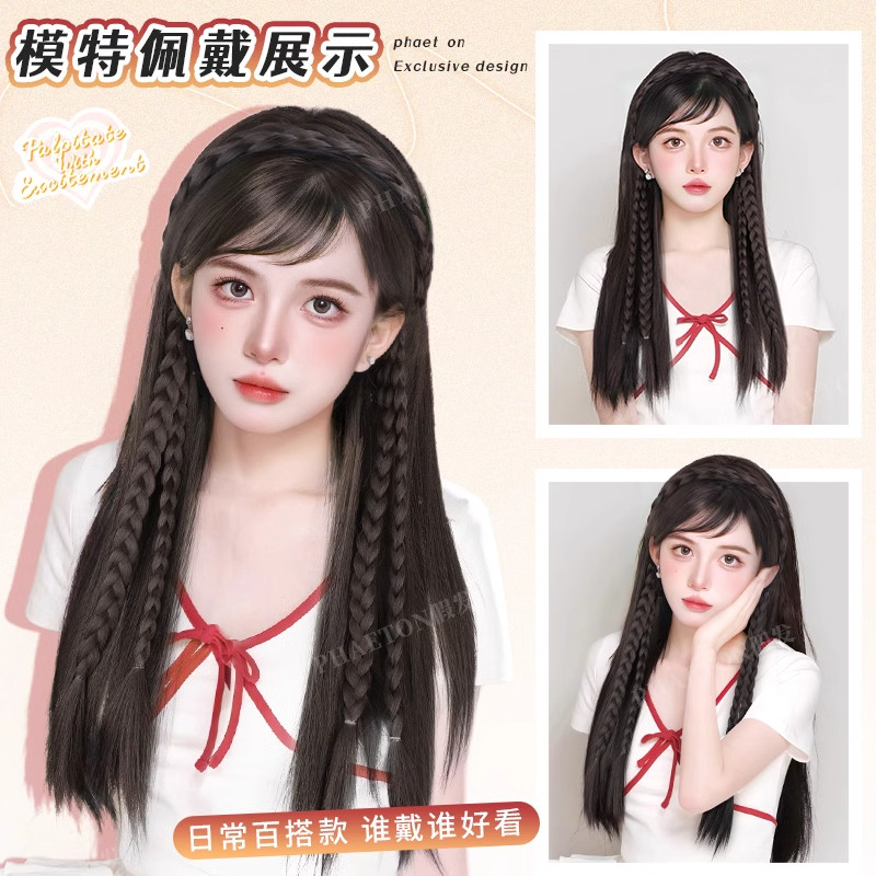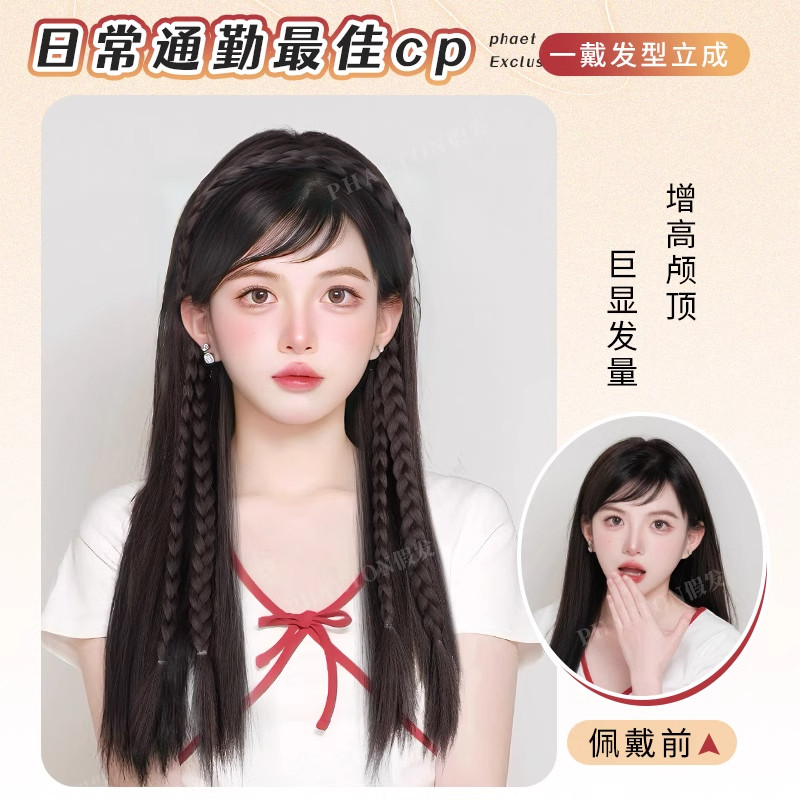 发箍假发一体式女2024新款网红无痕仿真式双发辫编发秋冬辫子麻花