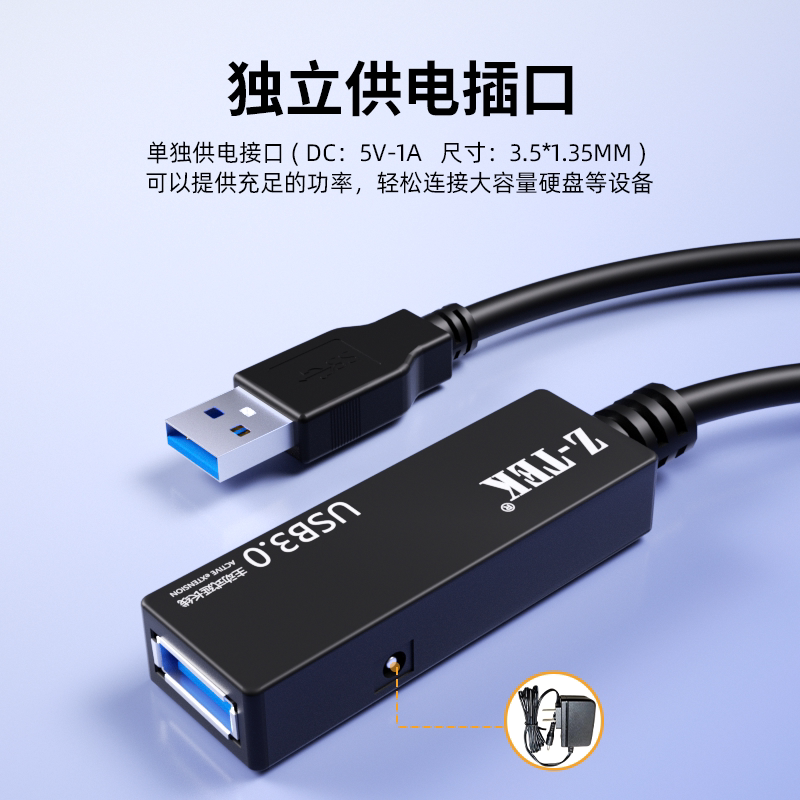 Z-TEK力特usb3.0延长线带电源信号放大器视频会议摄像头监控直播
