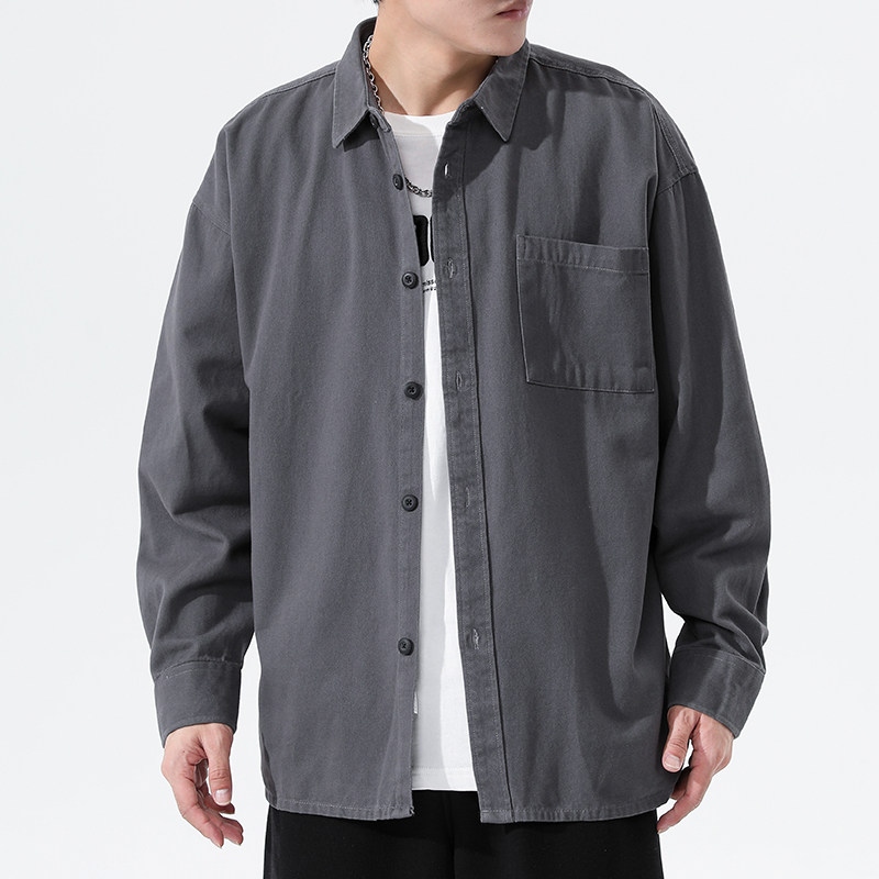男士衬衫长袖纯棉春秋季工装全棉潮衬衣寸衫外套衣服男装休闲上衣