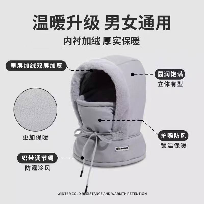 保暖帽子冬季骑行防风防寒防冻加厚加绒保暖面罩护耳套头帽一体帽