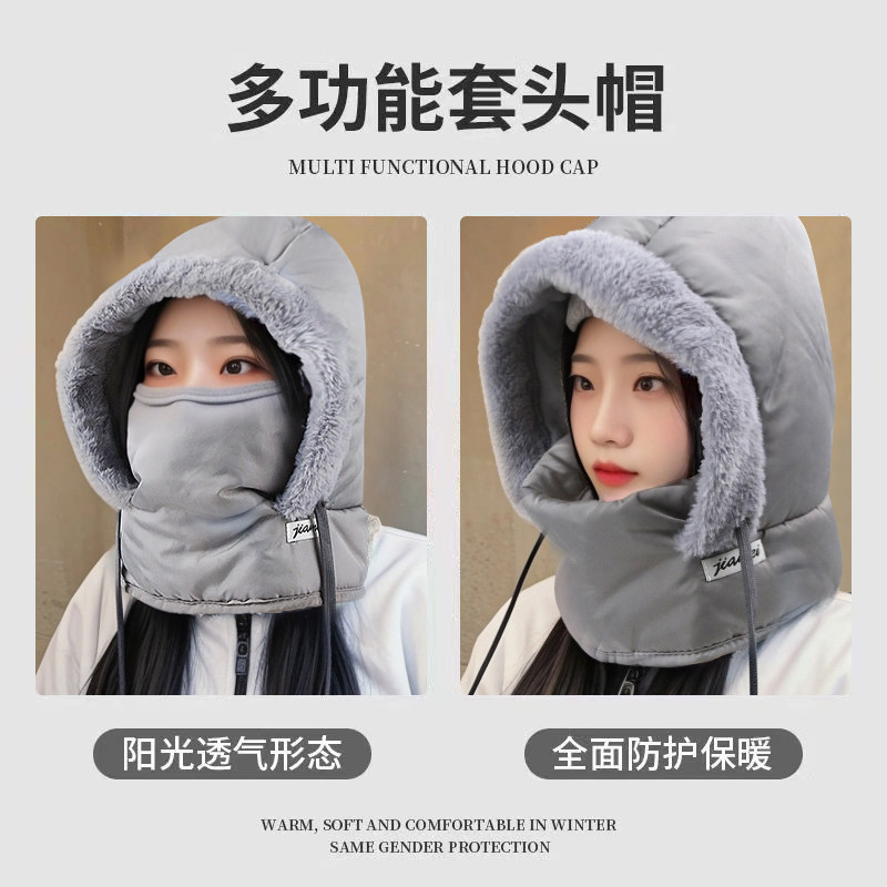 女保暖头套帽子围巾一体冬季加厚骑车电动车防寒骑行面罩围脖防风