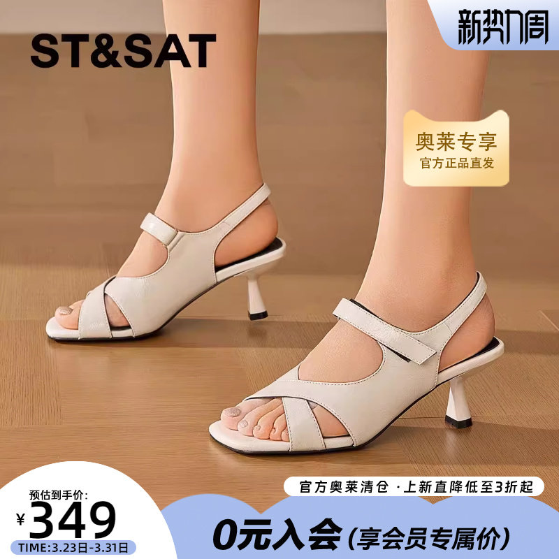 星期六高跟凉鞋女羊皮革2025新款夏季外穿一字带露趾真皮坡跟凉鞋