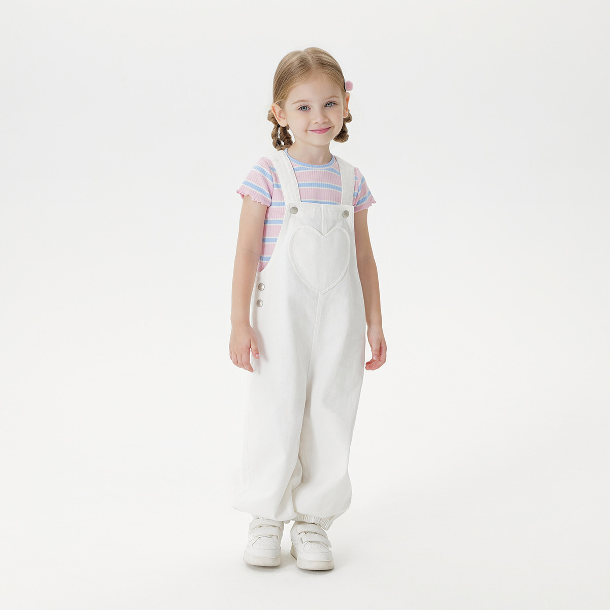 马克珍妮女童爱心纯棉牛仔背带裤宝宝连体裤2025年秋装新品551525