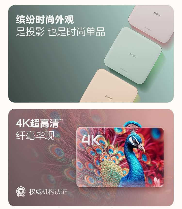 爱普生EF-50T/50R4K投影仪3LCD智能云台投影机家用超高清便携卧室