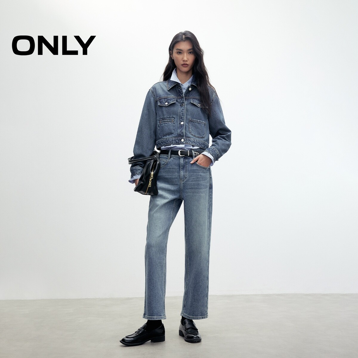ONLY春季潮流提臀约克线剪裁设计男友裤九分裤高腰牛仔裤女