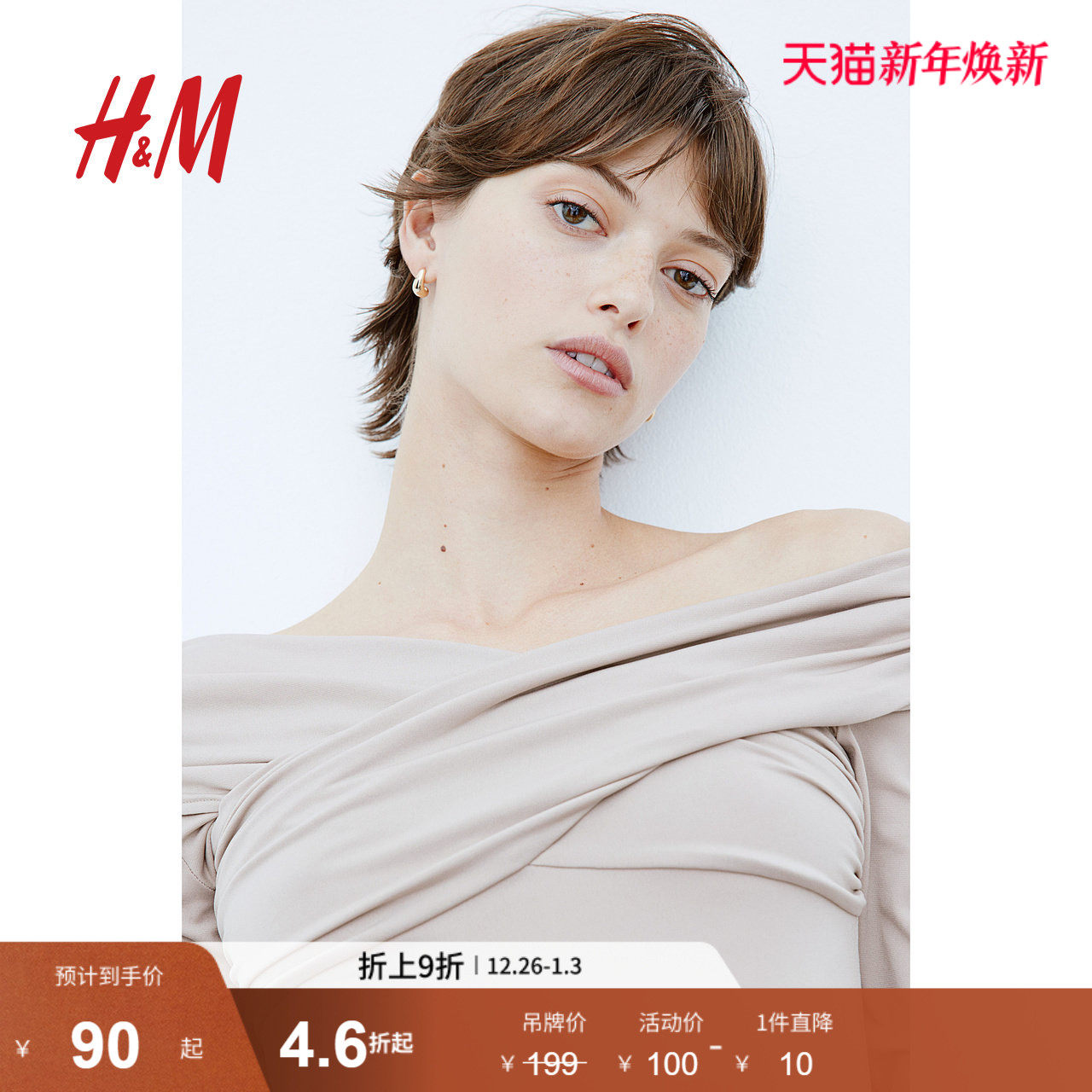 HM女装2025年冬季新款垂褶丁字裤连体紧身衣1269308