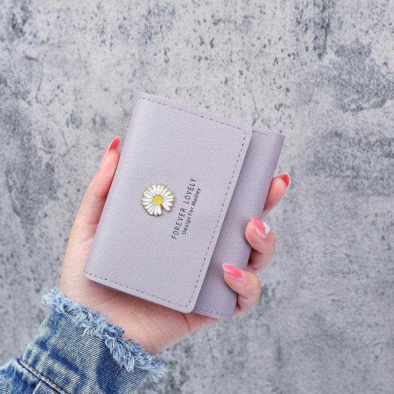 新款女士钱包雏菊短款小三折手工钱夹多卡位卡包零钱包多规格