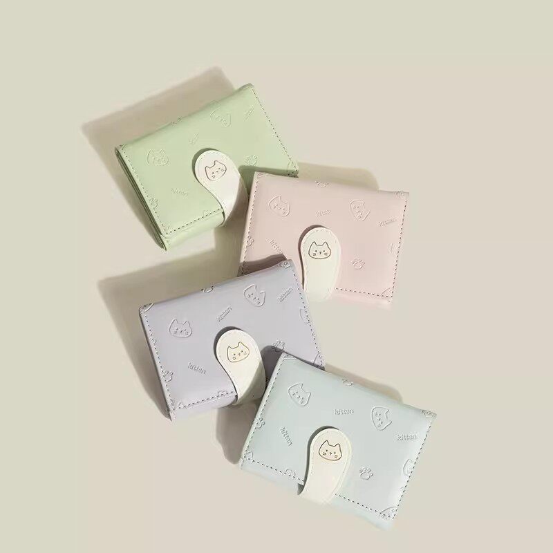 小众卡通可爱猫咪钱包2026新款小清新三折多卡位卡包超薄迷你钱包