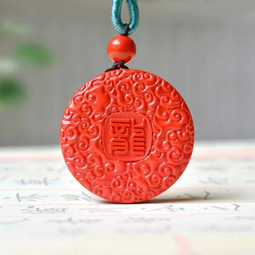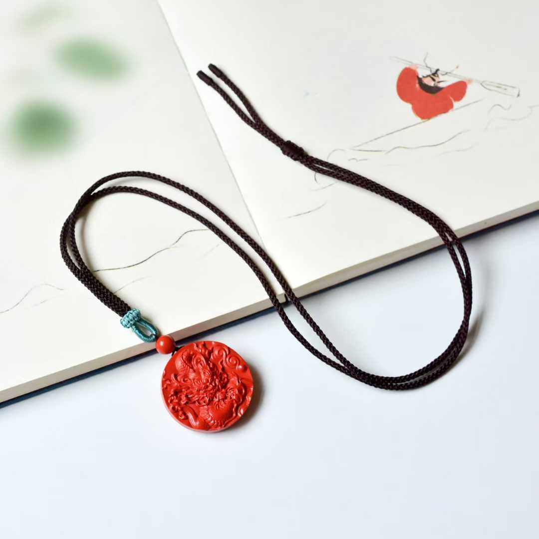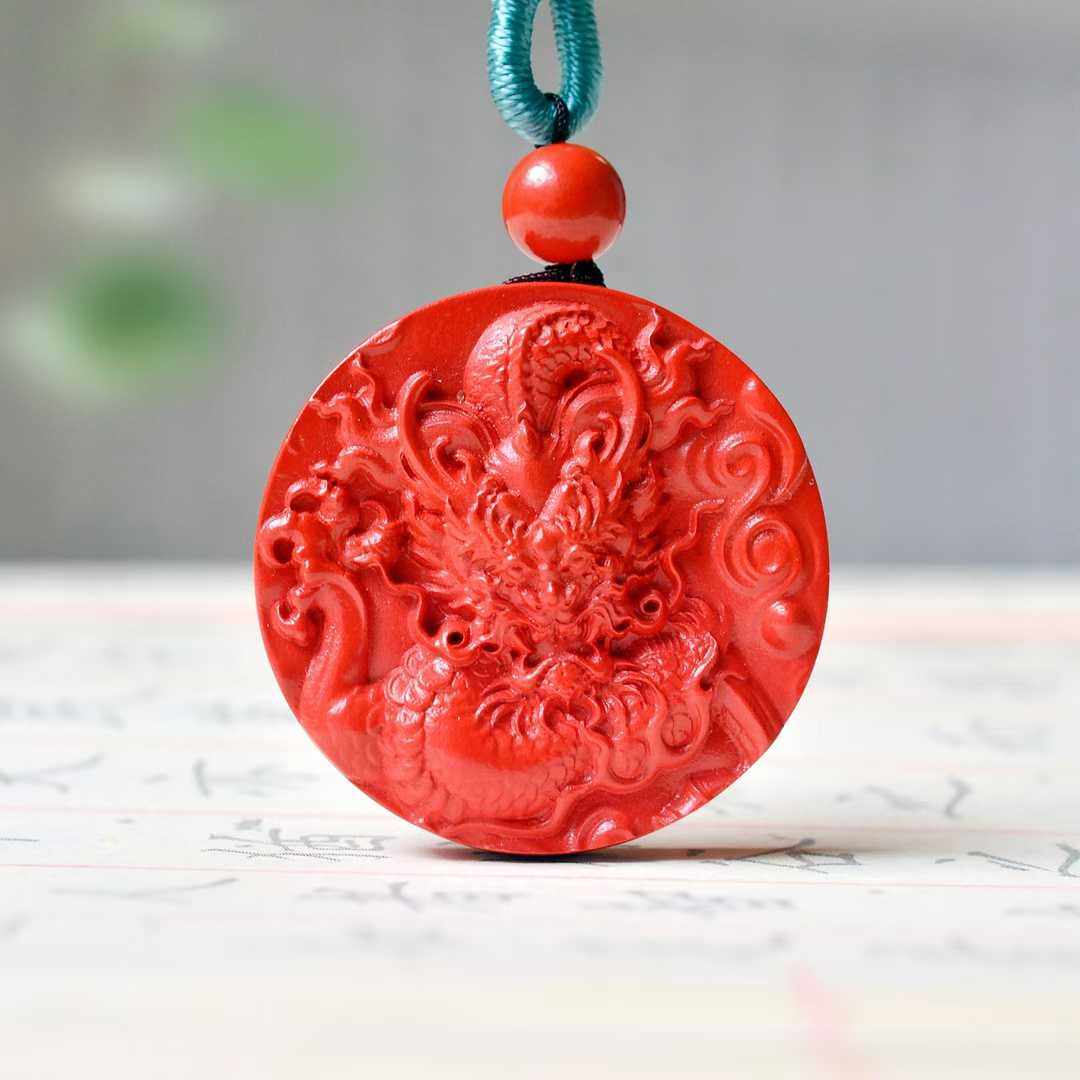 正品高含量朱砂红辰砂盘龙圆牌吊坠平安扣本命年项链挂件平安过稥