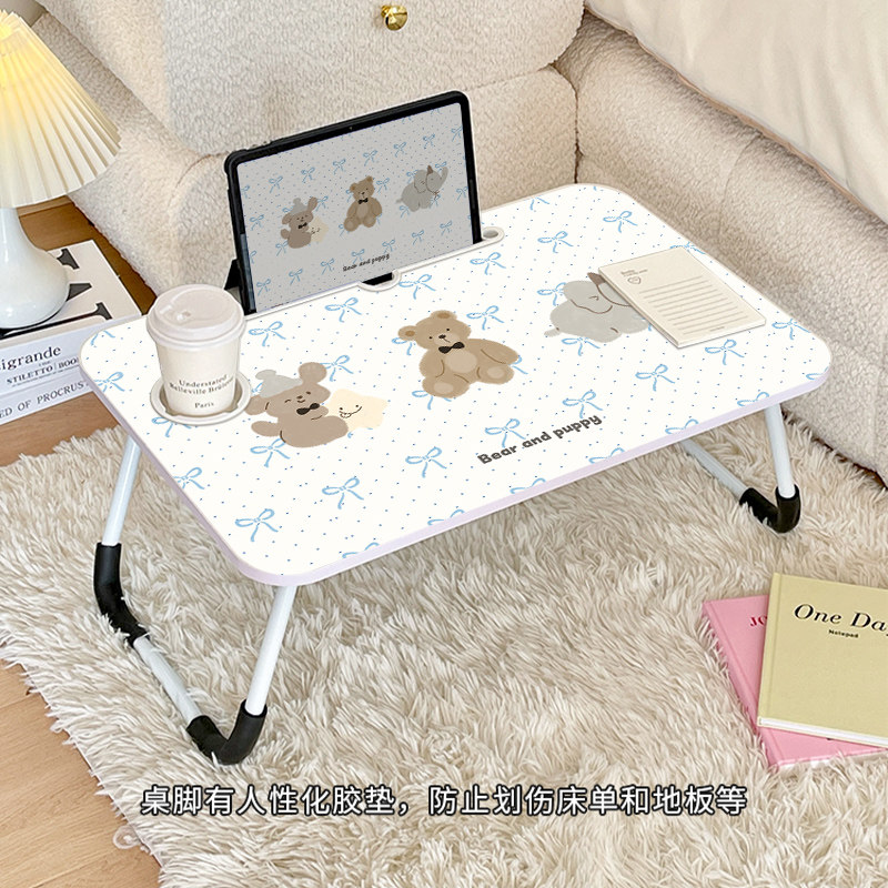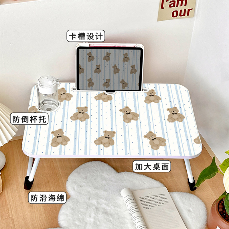 简约小熊床上小桌子可折叠宿舍懒人书桌餐桌卧室飘窗桌折叠桌可爱懒人小桌板学生写字桌化妆桌书桌高颜值上铺
