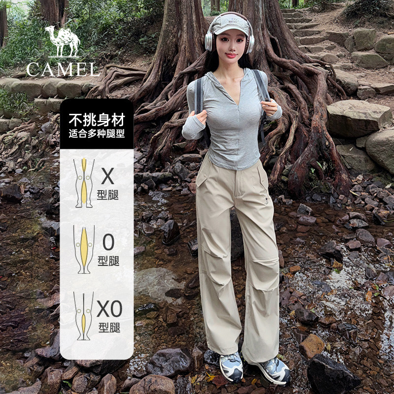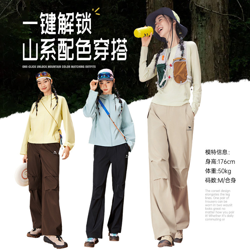 骆驼女装直筒休闲长裤2025秋冬新款卡其色加绒防水运动登山冲锋裤