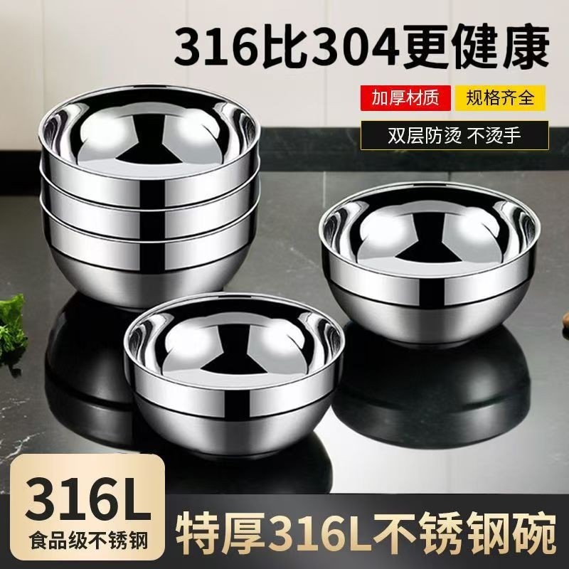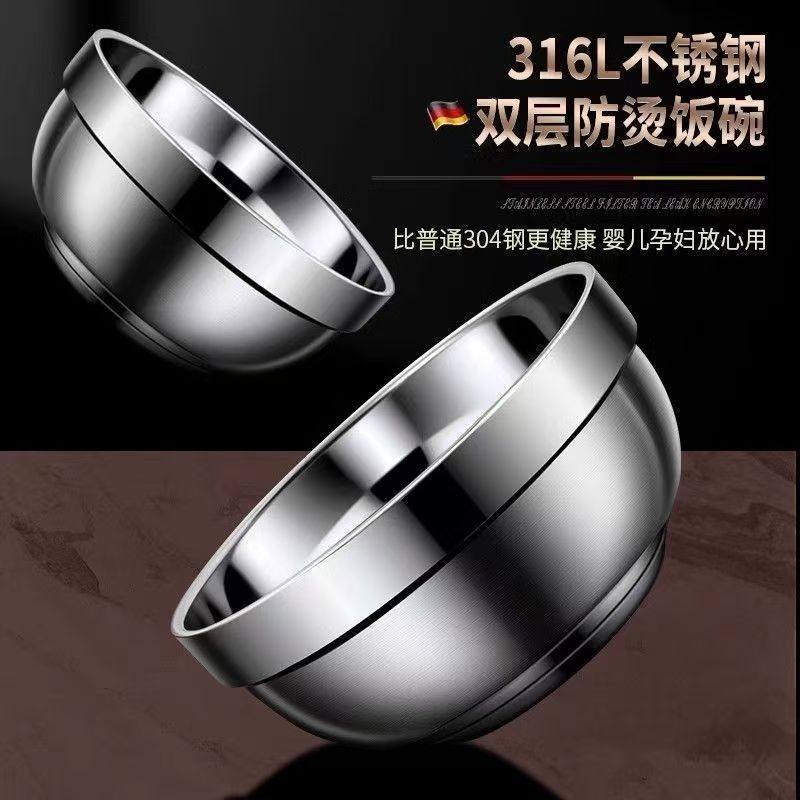 316食品级不锈钢碗家用儿童亲子成人双层隔热饭碗套装304汤碗防烫