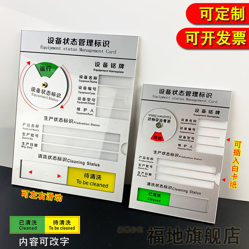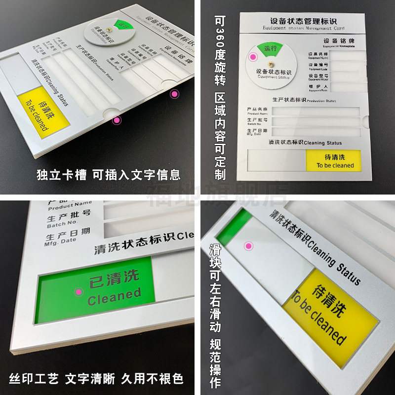 设备状态标识牌 设备管理标识牌仪器管理标示牌已清洁未清洁生产工厂车间机器清洁指示牌现货定做 亚克力铭牌