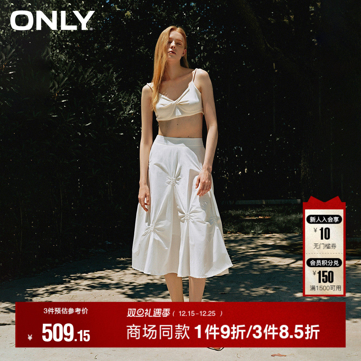 ONLY夏季弹力腰头不规则装饰高腰A字伞裙中长款半身裙女