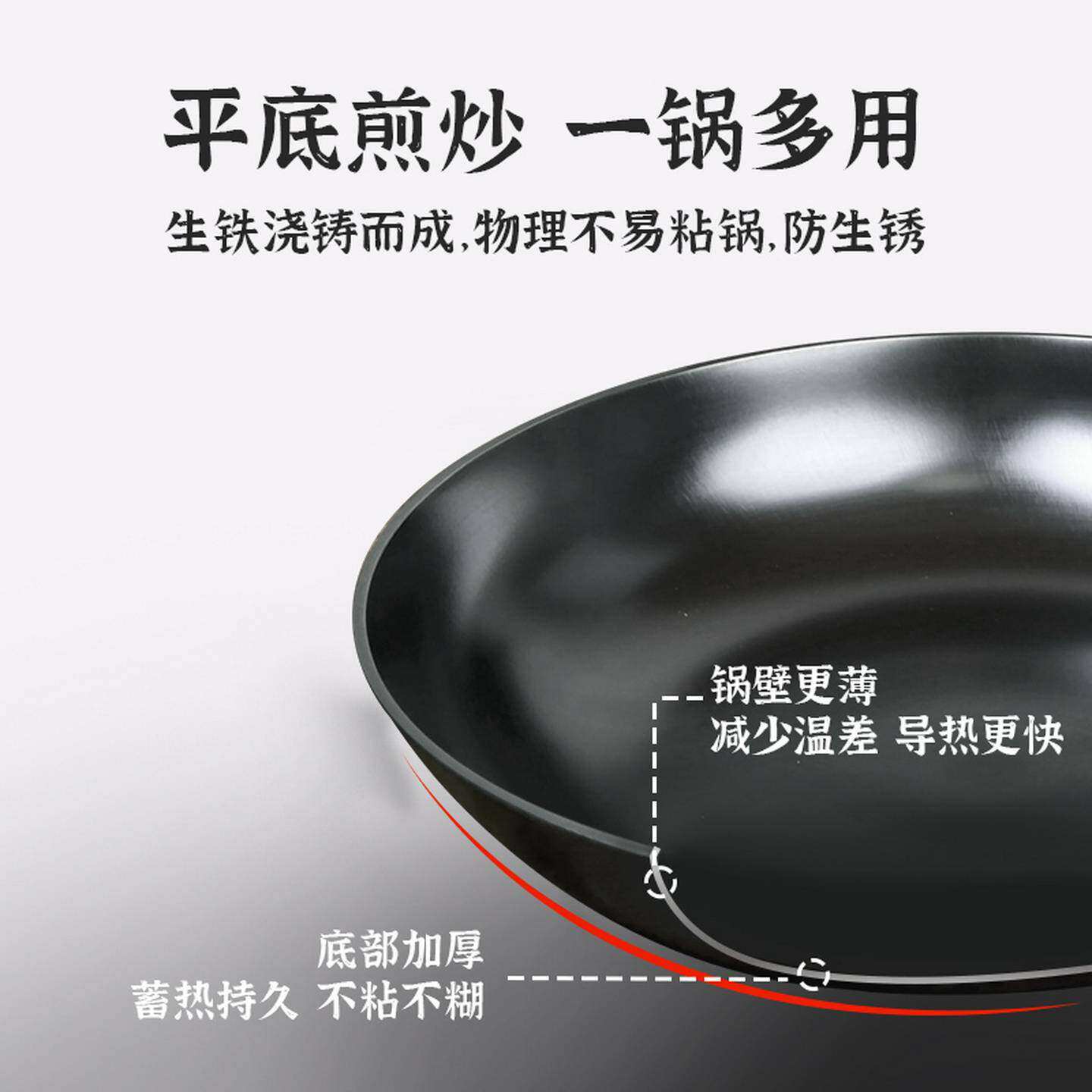 陈枝记铸铁锅平底煎锅无涂层家用炒菜锅煎牛排烙饼燃气灶电磁炉用