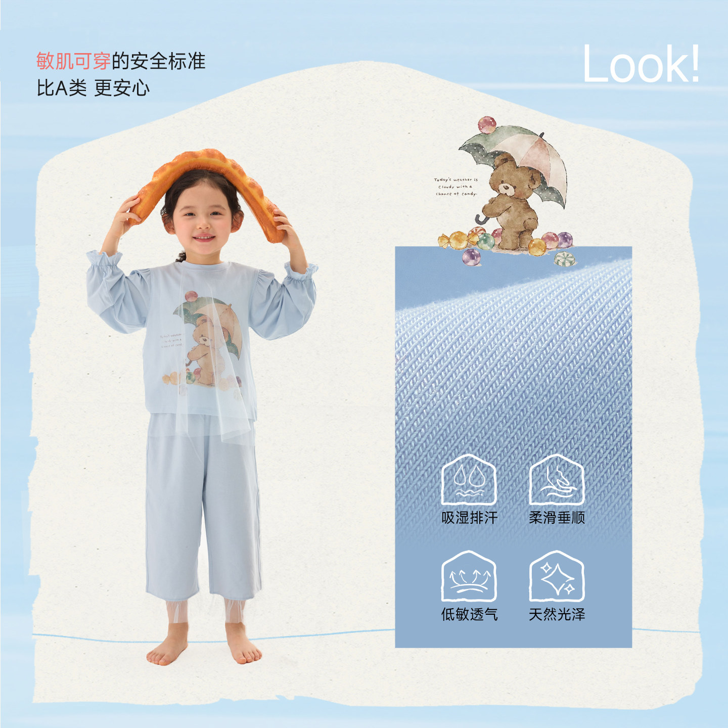 爱慕儿童套头长袖家居服套装/马甲男女童印花T恤裤子宽松睡衣新款