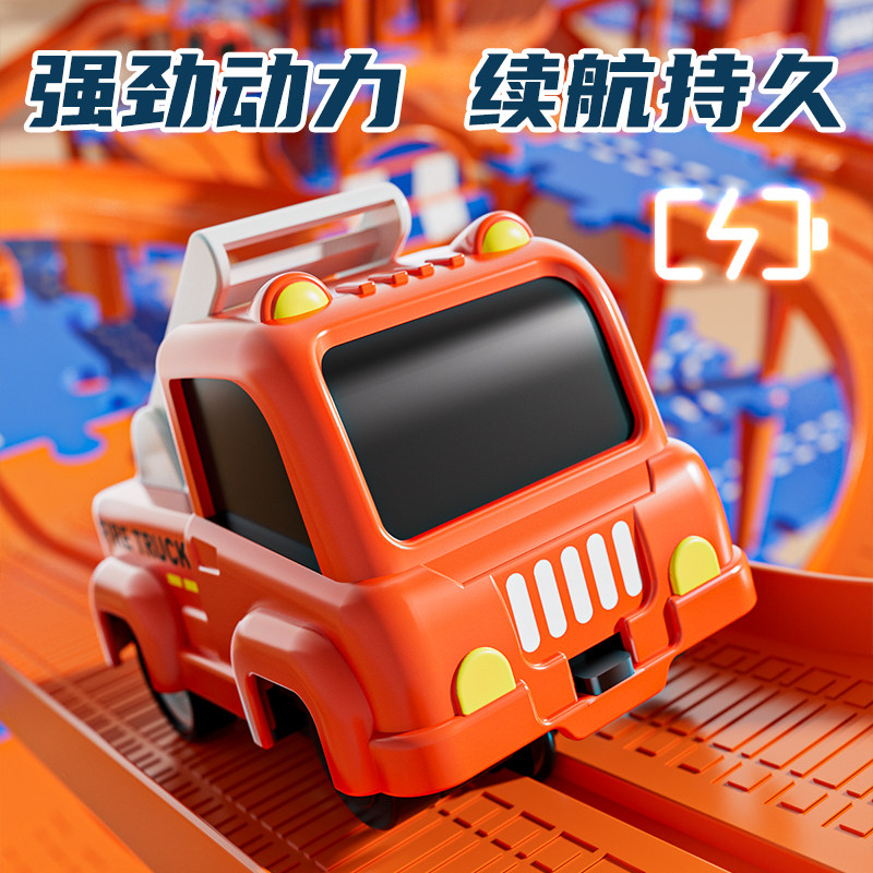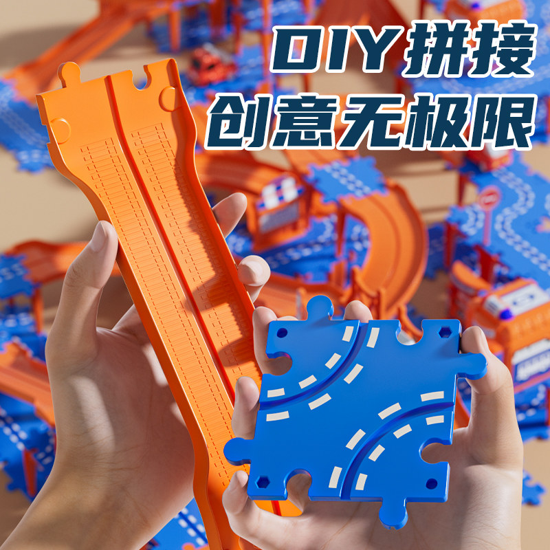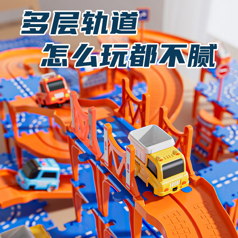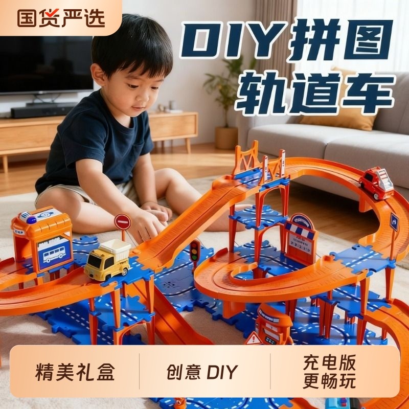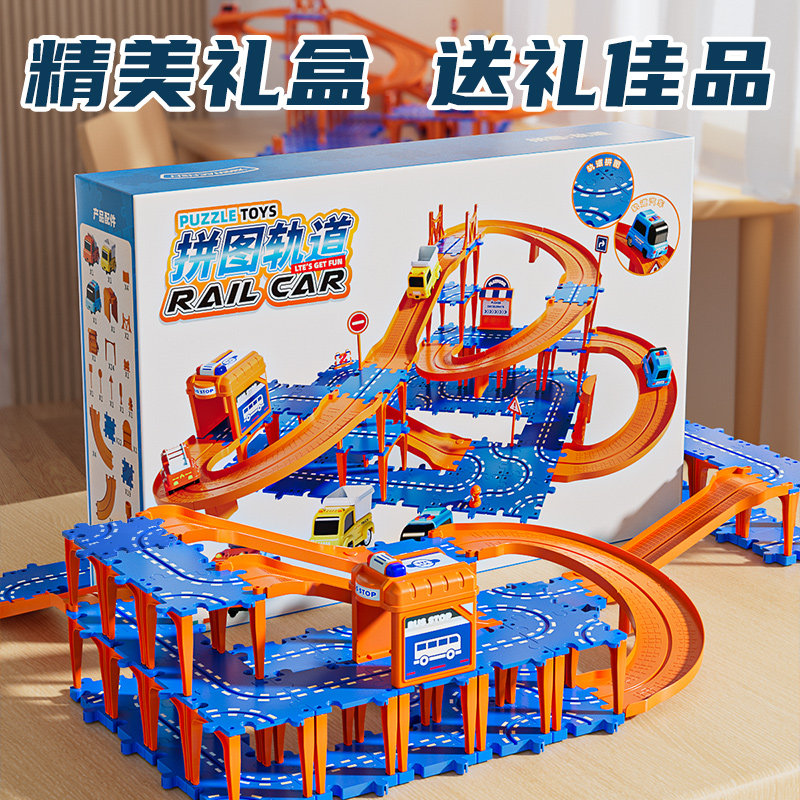 儿童轨道车玩具男孩滑道小汽车益智积木拼图小火车停车场生日礼物
