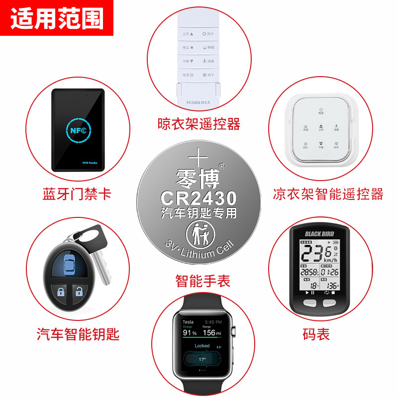 2430纽扣电池适用好太太二代晾衣架遥控器电池2450沃尔沃XC60 C70 XC40 SUV款亚太S60 S90 C60车钥匙3V锂电池