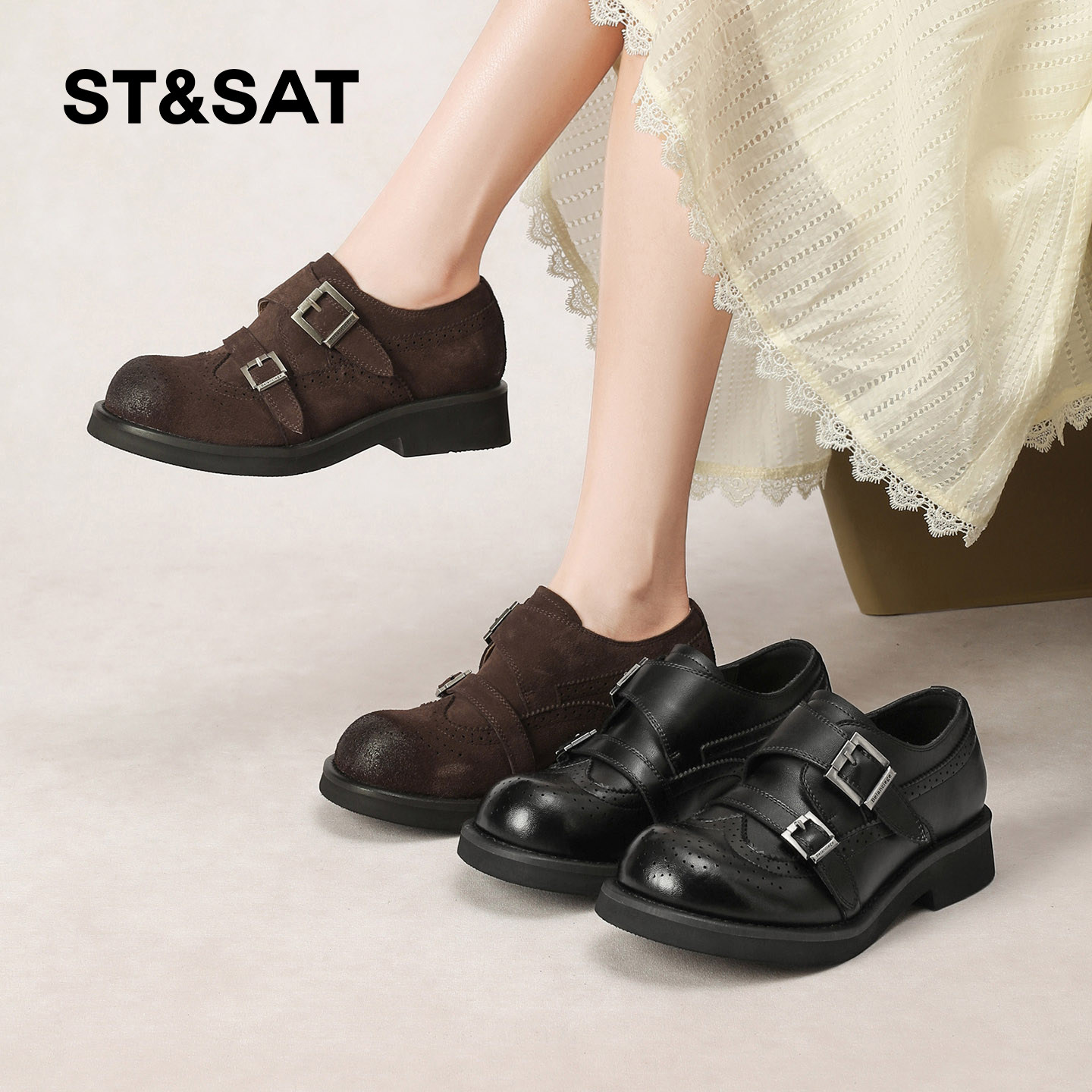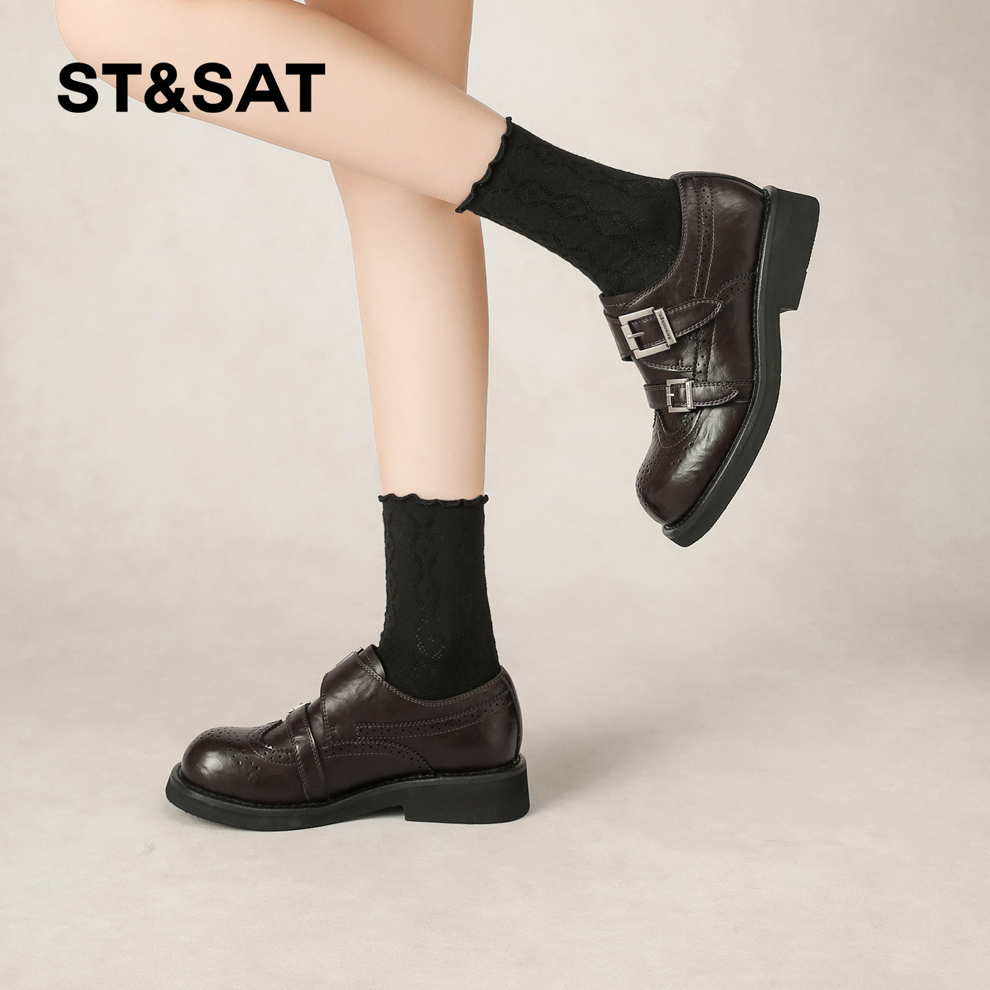 星期六复古通勤布洛克鞋女2026春季新款配裙子擦色轻便厚底乐福鞋
