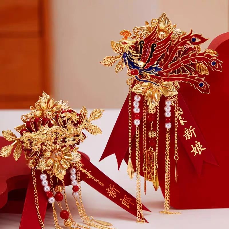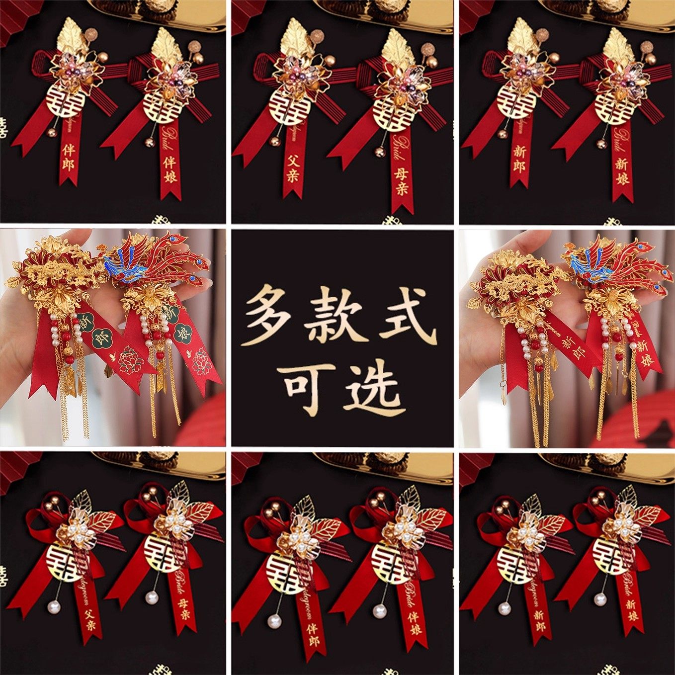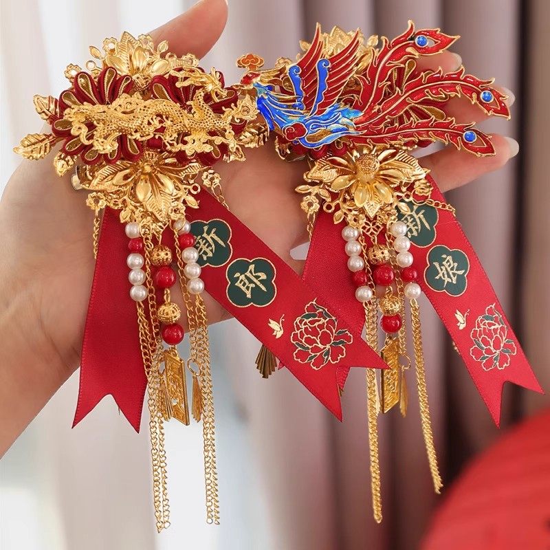 婚礼胸花2025新娘新郎结婚配饰红色高档龙凤襟花别针全套胸针伴郎