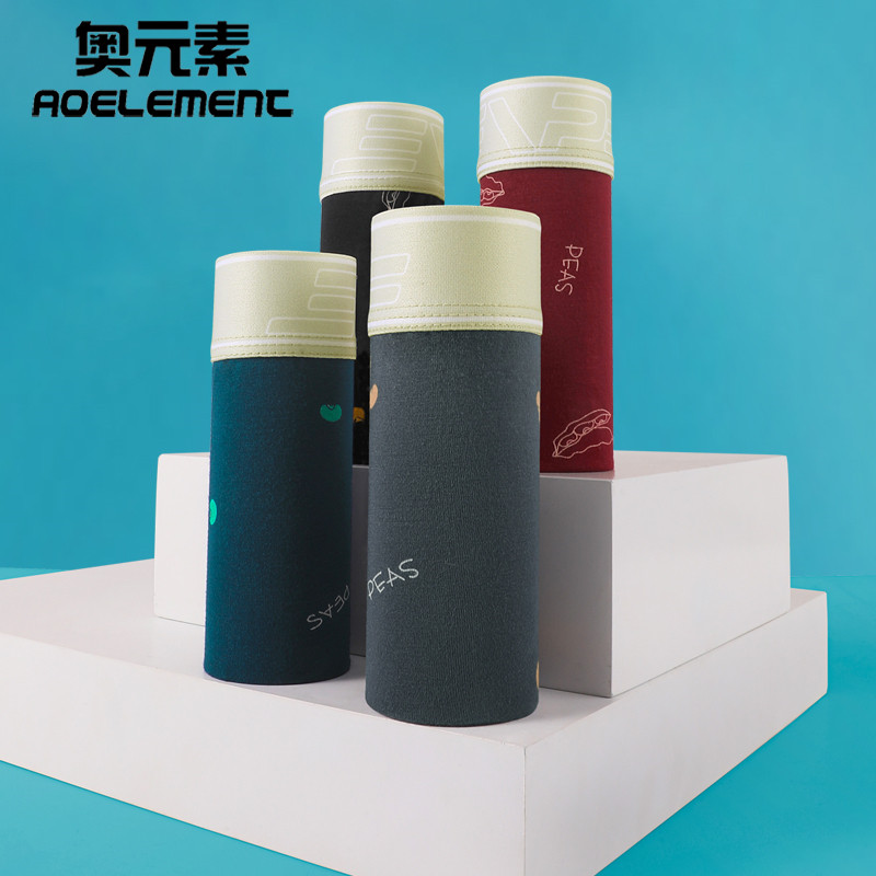 4条礼盒装男士内裤男莫代尔平角裤个性舒适透气潮流四角短裤衩头