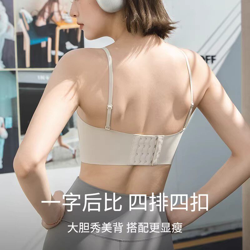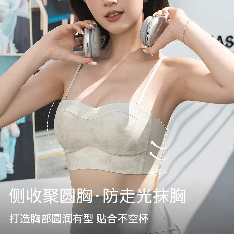 无痕美背抹胸内衣女小胸聚拢可外漏细肩带一体固定杯背心式文胸罩