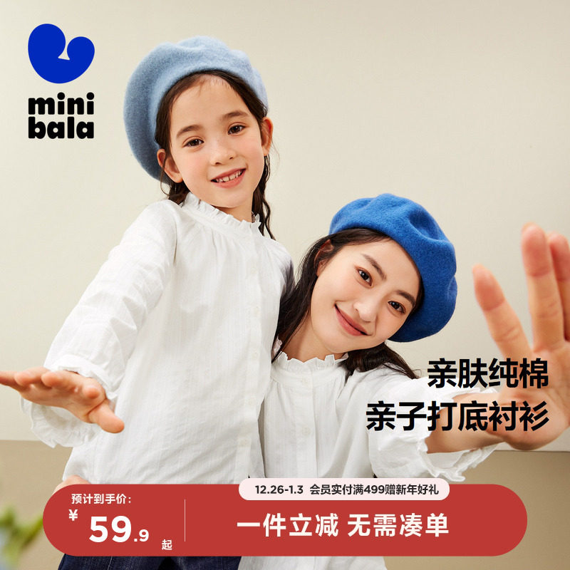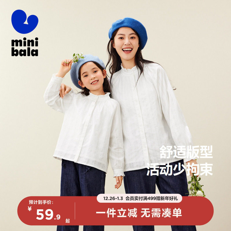 【mini亲子】迷你巴拉巴拉女童春秋新款木耳边上衣长袖衬衫