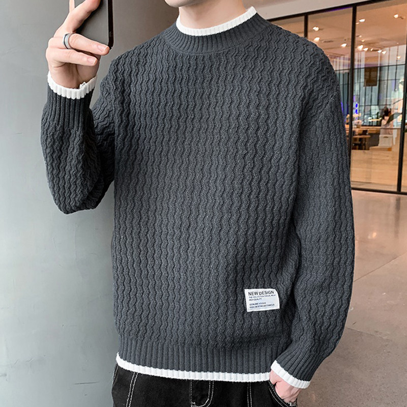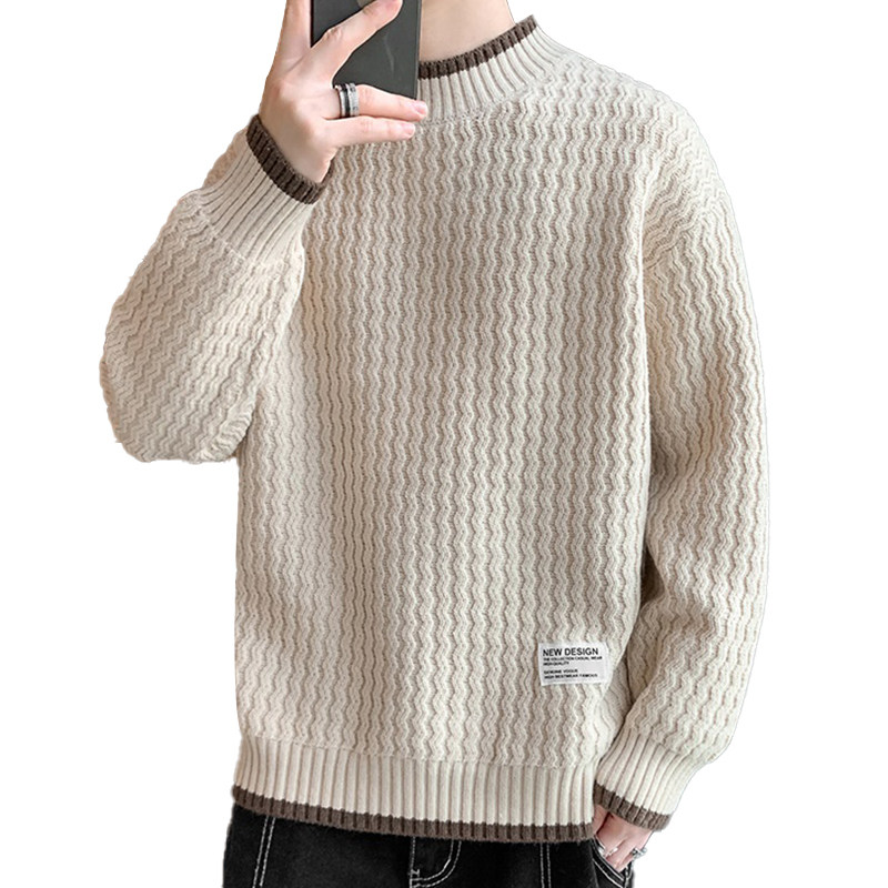 波浪纹毛衣男秋冬款潮牌内搭衣服假两件线衣加绒加厚半高领针织衫