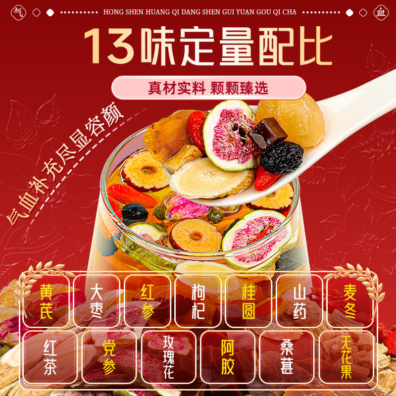 黄芪灵芝党参红枣桂圆组合枸杞茶补八宝茶花茶养女人气血茶养生茶