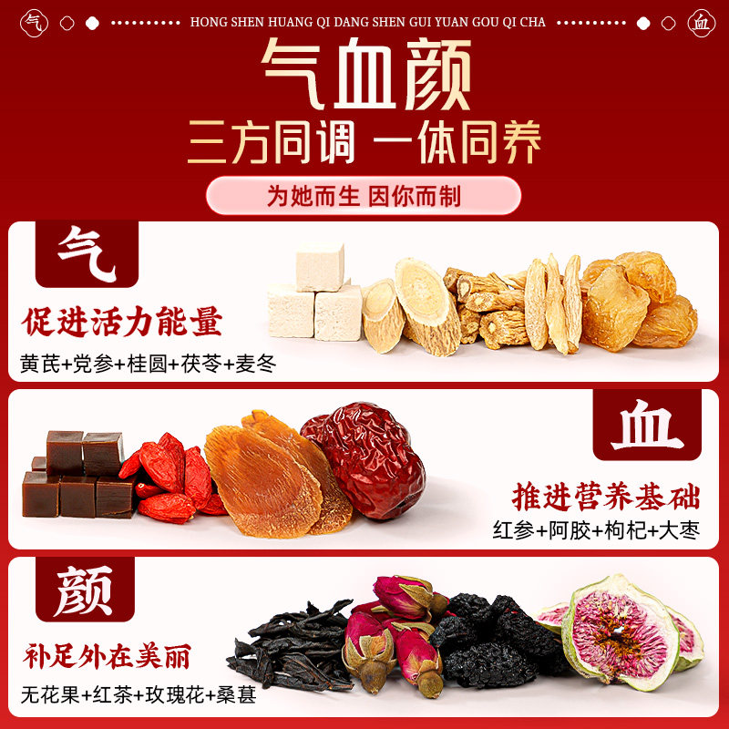 北京同仁堂黄芪党参红枣桂圆枸杞茶女生补气养血调理补气血养生茶