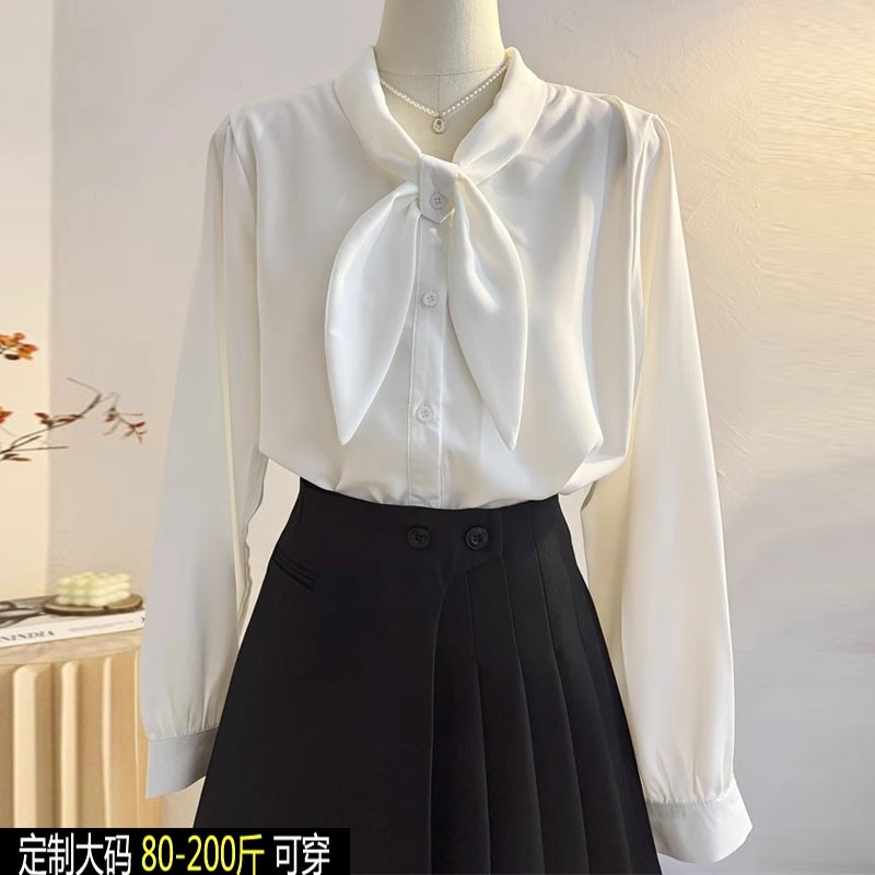 白色雪纺长袖职业衬衫女2025年春夏新款面试通勤内搭飘带衬衣系带