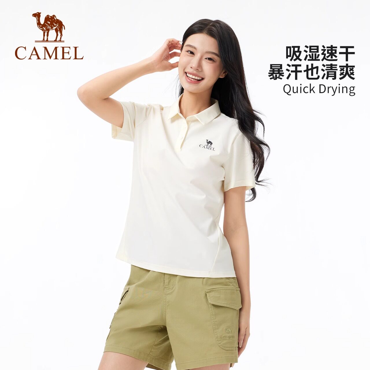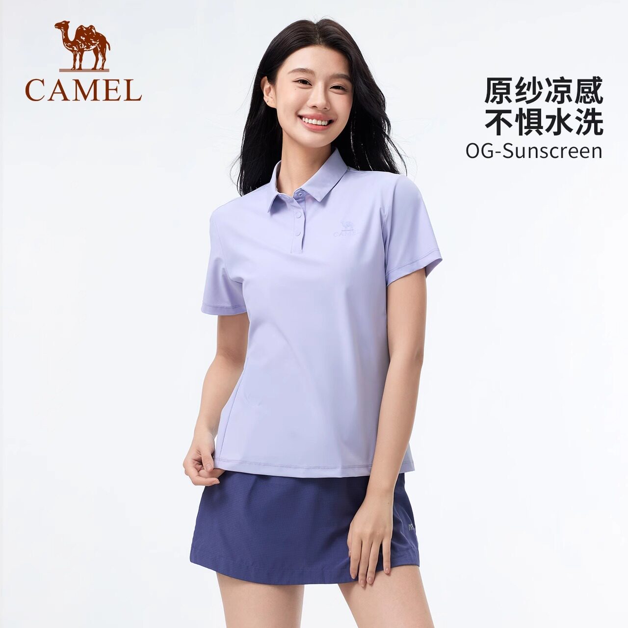 【原纱凉感】骆驼运动速干T恤2026夏季新款女短袖POLO衫抗皱上衣