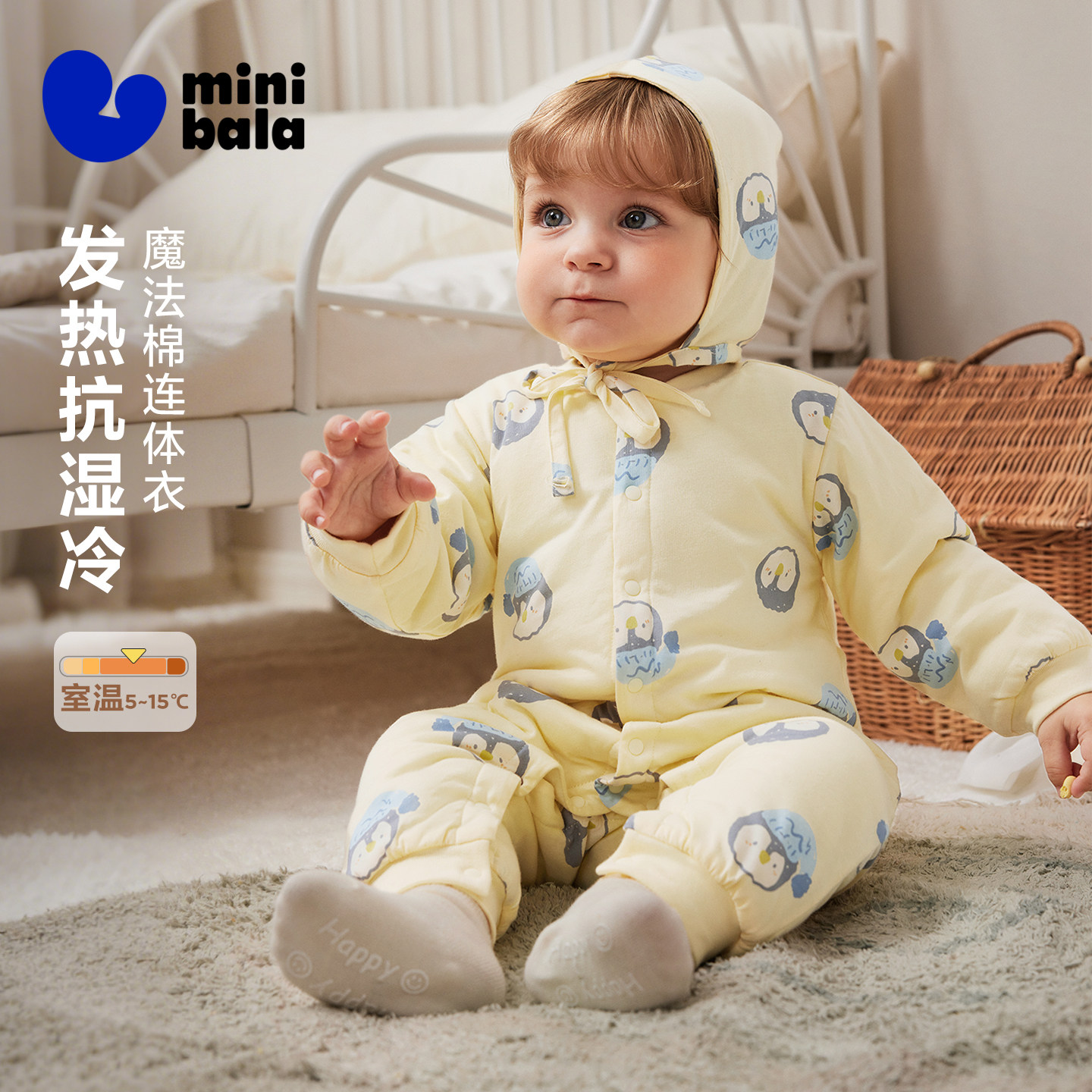 【纯棉】迷你巴拉巴拉男女童宝宝抗湿冷保暖棉服连体衣爬服冬新款