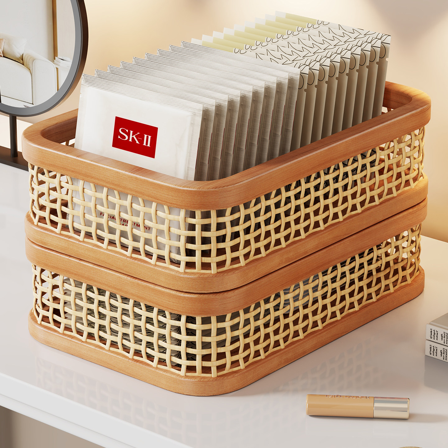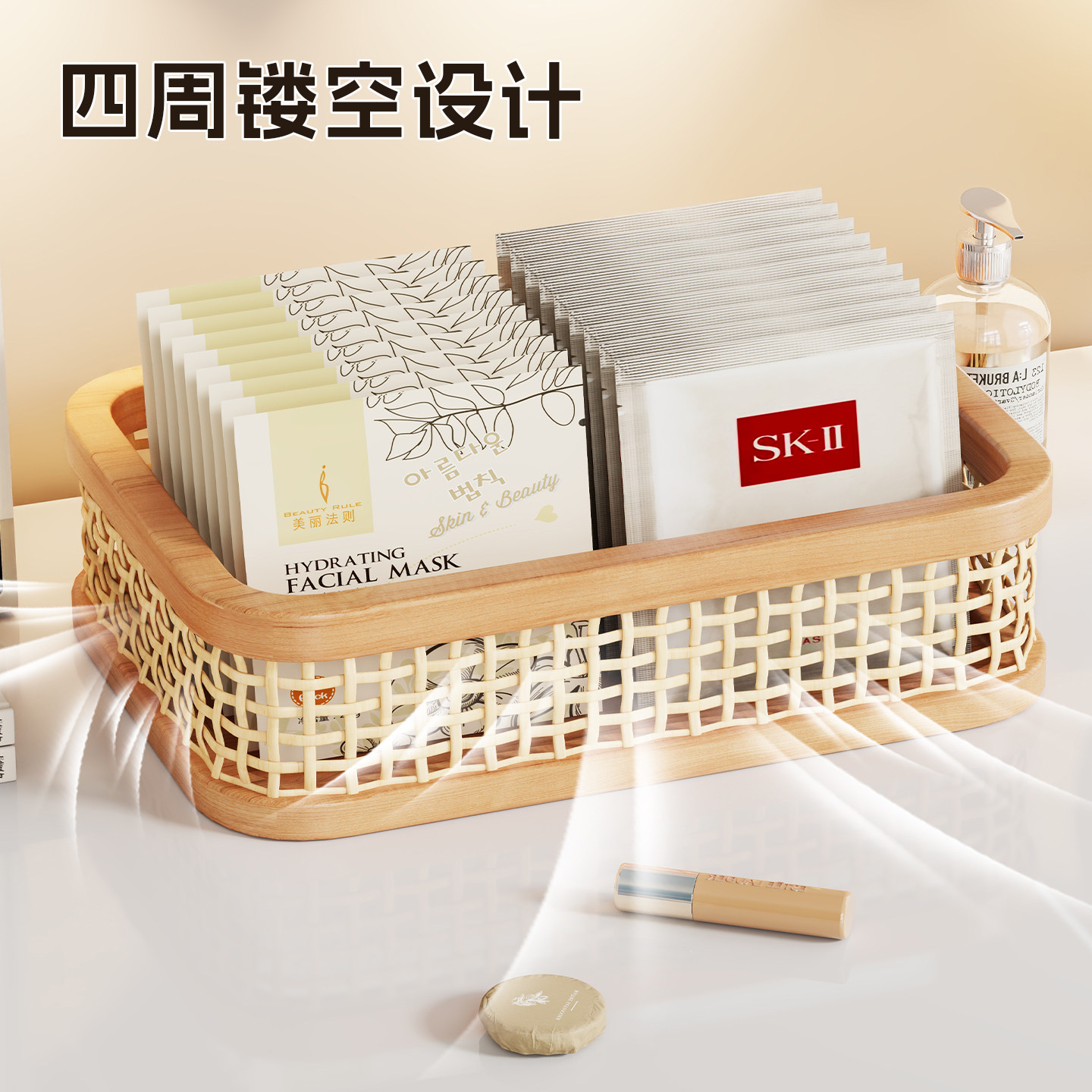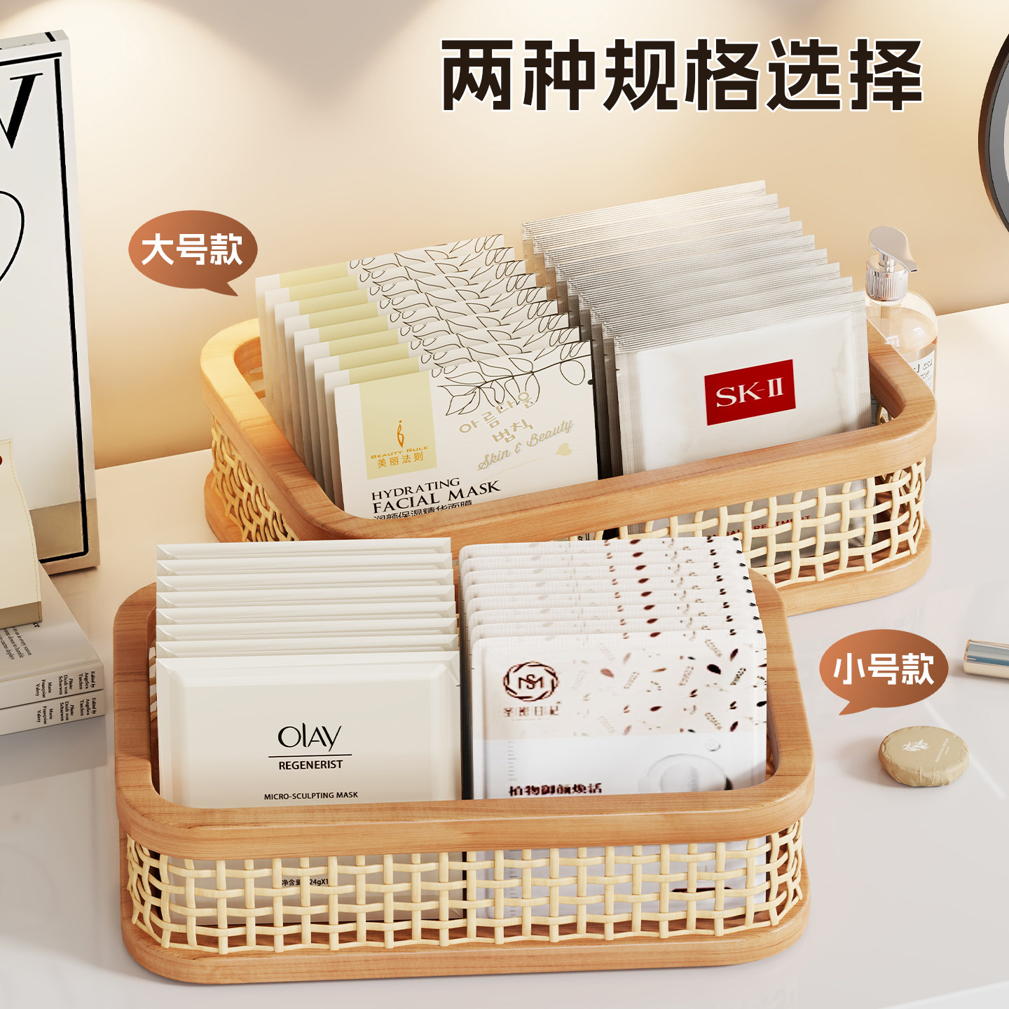 实木面膜收纳盒欧式化妆品储物箱梳妆台面大容量护肤品置物整理架