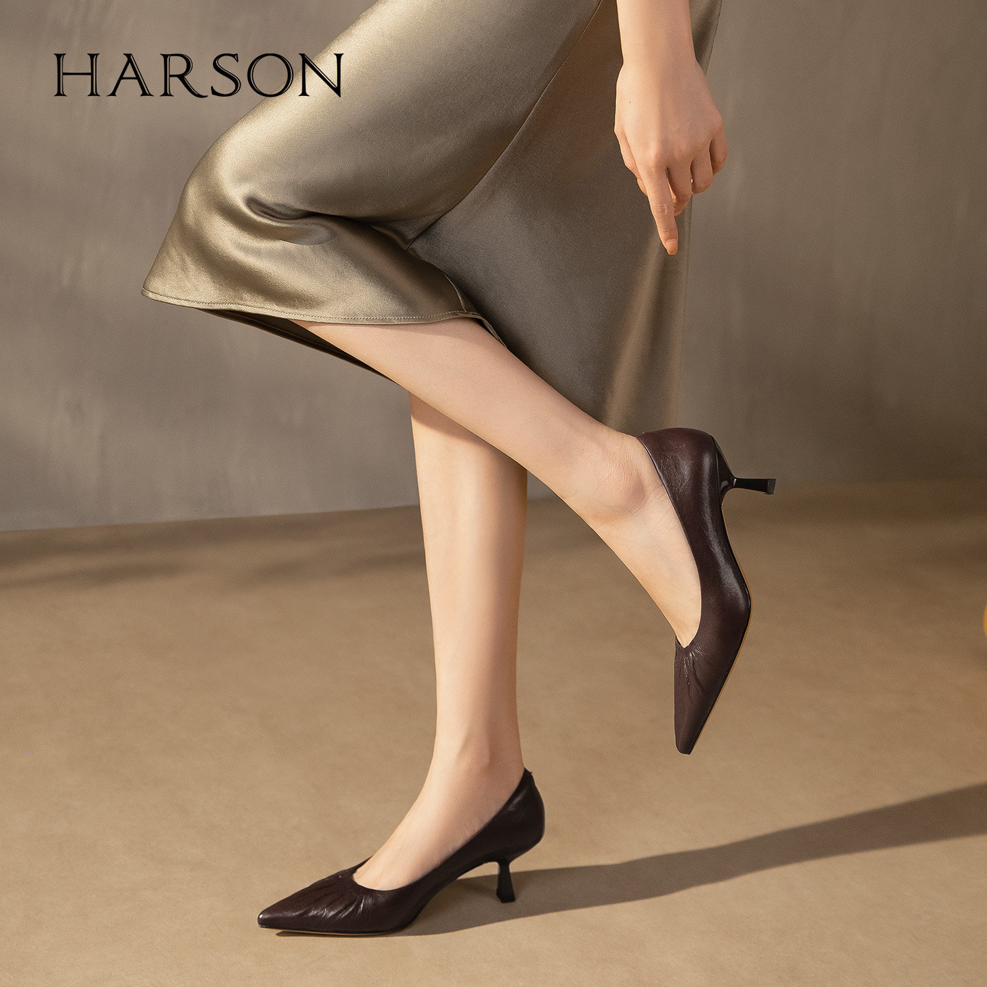 哈森优雅尖头细跟高跟鞋女简约舒适一脚蹬通勤浅口单鞋HWL250168